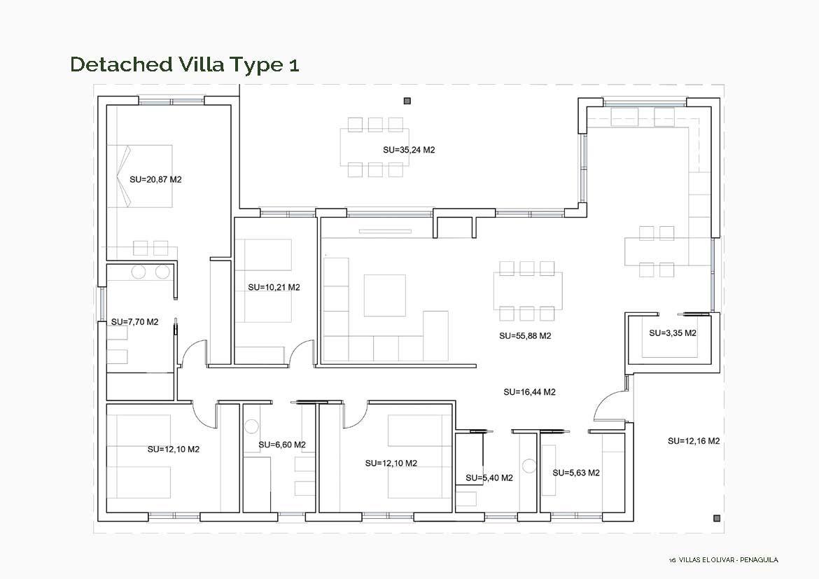Każda willa położona jest na prywatnej działce o powierzchni 800 m² i rozmieszczona jest na jednym poziomie, zapewniając maksymalny komfort i dostępność. Do wyboru jest 5 różnych układów z 3 lub 4 sypialniami, 2 lub 3 łazienkami i powierzchnią zabudowy od 130 do 178 m². Wszystkie domy posiadają duże zadaszone tarasy, idealne do cieszenia się życiem na świeżym powietrzu przez cały rok.