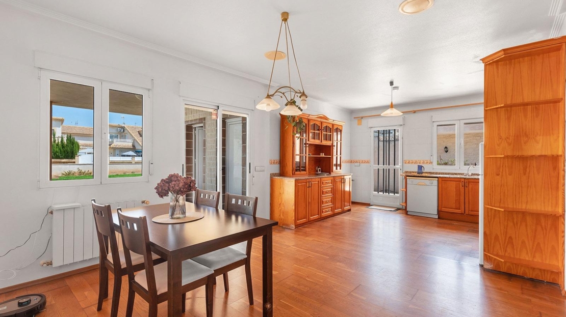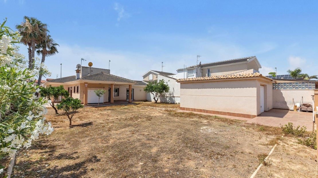 Descubre esta magnífica villa independiente situada en una amplia parcela de 753 m2, ideal para quienes buscan confort, privacidad y cercanía al mar. La vivienda, distribuida en una sola planta, ofrece 159 m2 construidos que destacan por su amplitud y funcionalidad.~Cuenta con 2 dormitorios luminosos, 2 baños completos, un práctico lavadero, una cocina totalmente equipada y una acogedora terraza perfecta para disfrutar del clima mediterráneo. El diseño en una sola planta facilita la movilidad y aporta comodidad a la vida diaria.~Además, dispone de un garaje cerrado de 31 m2, ideal tanto para vehículo como para almacenamiento adicional. La ubicación es inmejorable: a tan solo 500 metros del mar, permitiendo disfrutar de la playa a pocos pasos de casa.~~Una vivienda ideal como residencia habitual o como segunda residencia junto al mar.~~Torre de la Horadada es una encantadora zona costera al sur de Alicante, conocida por sus playas de arena fina, su paseo marítimo y su famosa torre vigía del siglo XVI. Ofrece un entorno tranquilo con todos los servicios necesarios: restaurantes, tiendas, puerto deportivo y centros de salud. A solo pasos del mar, es ideal tanto para vacaciones como para vivir todo el año, gracias a su ambiente familiar, su clima agradable y su excelente ubicación cerca de Murcia y Alicante.