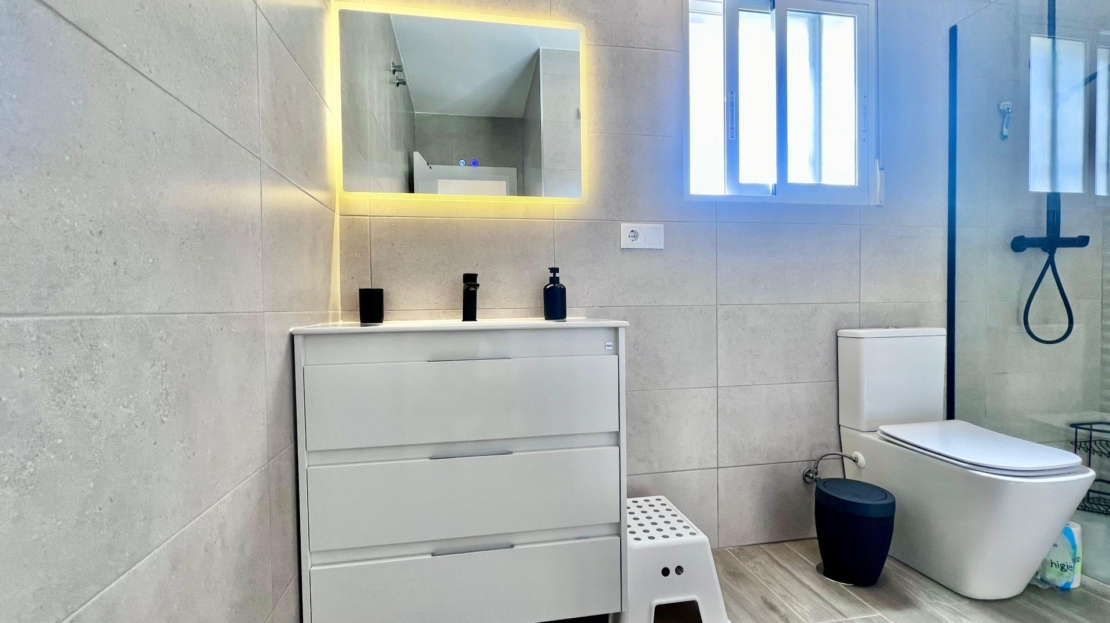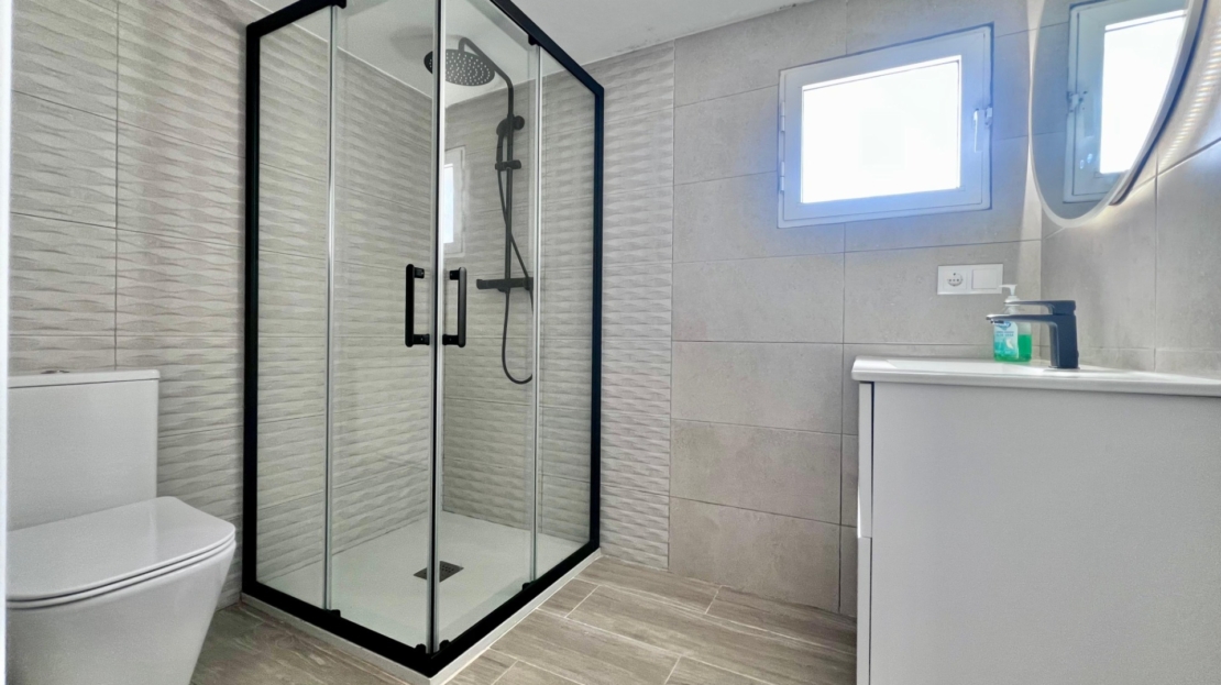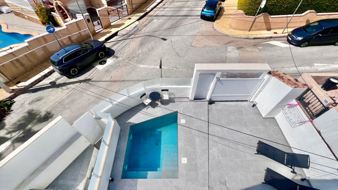 Villa en esquina completamente reformada en San Miguel de Salinas, ubicada en las inmediaciones de la zona de Las Filipinas, una de las áreas residenciales más demandadas por su tranquilidad y buena conexión.~~La propiedad se asienta sobre una parcela de aproximadamente 300 m2 y destaca por su distribución en dos viviendas independientes, lo que la convierte en una opción ideal tanto para familias numerosas como para inversión.~~En la planta principal, tras acceder a la vivienda, encontramos una agradable zona exterior con piscina privada y porche. En el interior se dispone un luminoso salón-comedor con cocina americana, dos dormitorios y un baño completo. Además, la vivienda cuenta con un solárium perfecto para disfrutar del clima mediterráneo durante todo el año.~~La planta inferior, con acceso independiente desde la parcela mediante puerta automática y espacio para aparcamiento, ofrece una segunda vivienda compuesta por salón-comedor con cocina americana, tres dormitorios y dos baños, uno de ellos en suite. Esta planta también dispone de su propia piscina privada, aportando mayor comodidad e independencia.~~La vivienda ha sido completamente reformada y equipada con aire acondicionado en todas las estancias. En el exterior, parte de la parcela cuenta con césped artificial, facilitando el mantenimiento.~~Ubicada en una zona residencial muy tranquila, habitada durante todo el año, esta propiedad combina privacidad y cercanía a todos los servicios. A pocos minutos se encuentran campos de golf, centros comerciales, restaurantes y las playas de Orihuela Costa. San Miguel de Salinas es conocido por su entorno natural, sus vistas despejadas y su ambiente acogedor, ideal tanto para residencia habitual como para disfrutar de largas estancias.