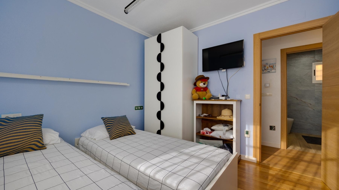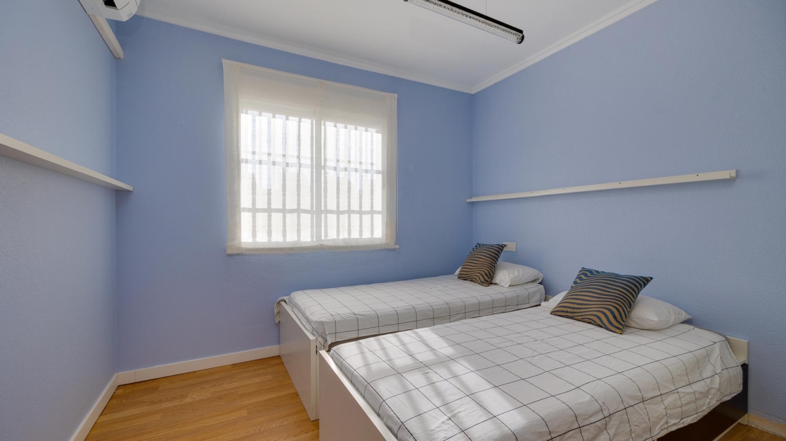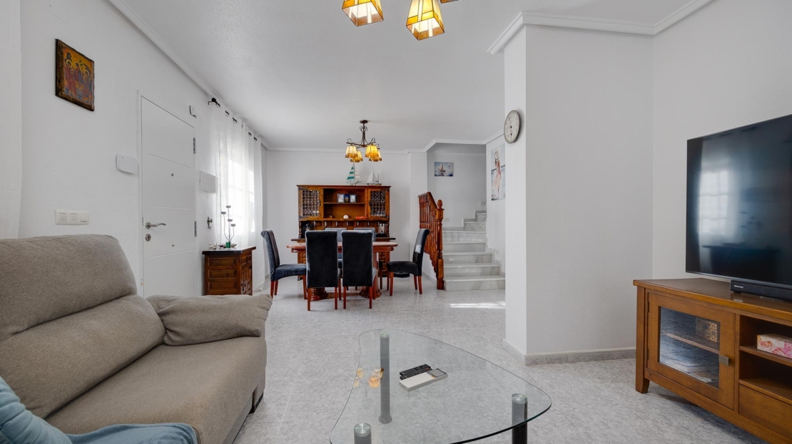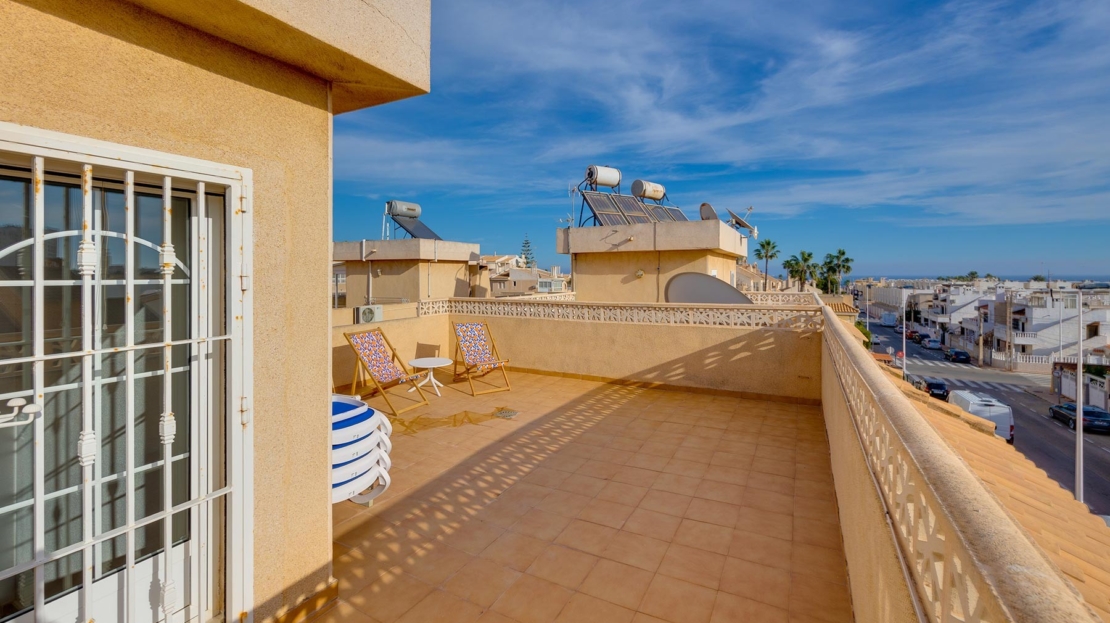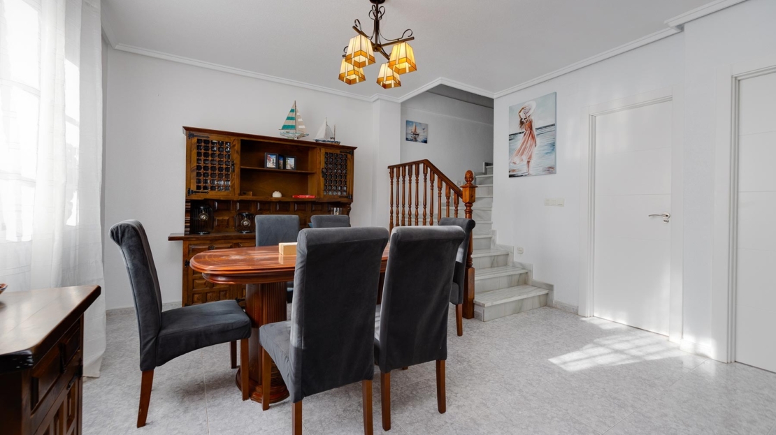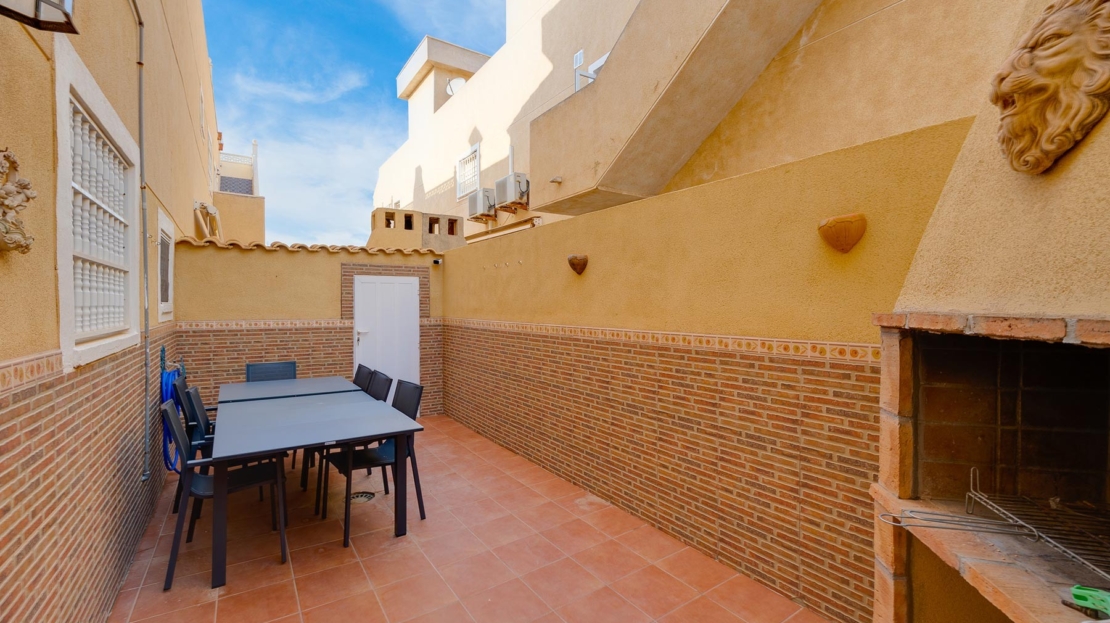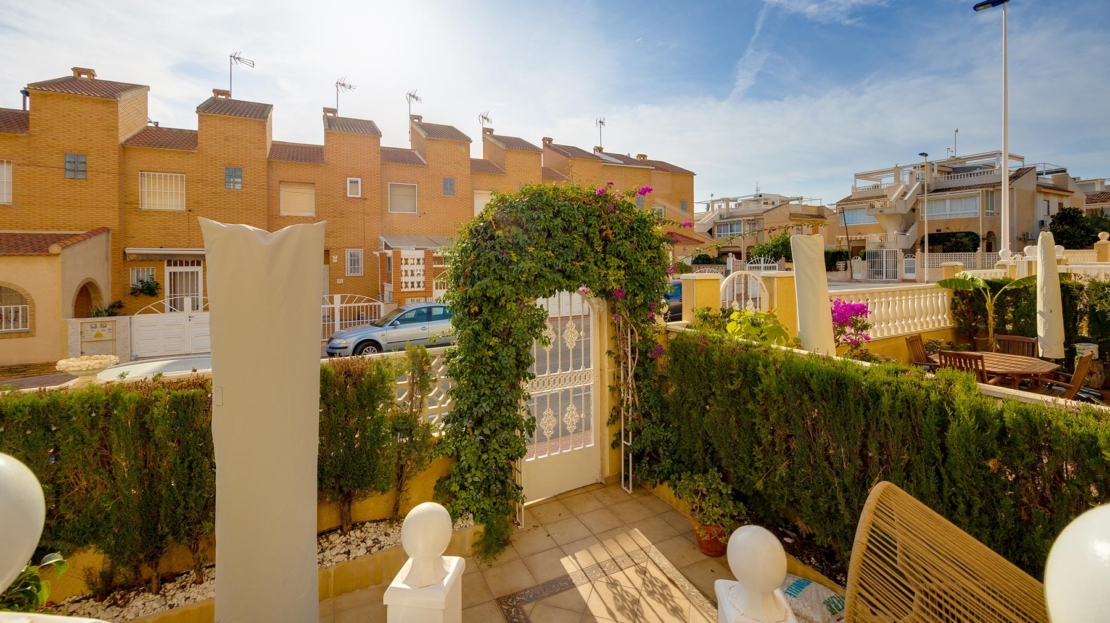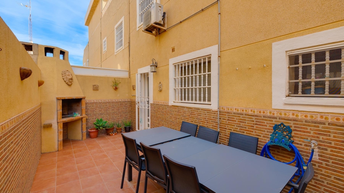 Descubre este espectacular adosado en Torrevieja, ubicado a pocos minutos a pie de la Playa de Los Locos y rodeado de todo tipo de servicios, comercios, restaurantes y zonas de ocio, una opción ideal tanto para residencia habitual como para disfrutar de la Costa Blanca durante todo el año o como inversión.La vivienda cuenta con 3 dormitorios y 2 baños, y ha sido recientemente reformada, ofreciendo un estilo moderno, funcional y acogedor. Se vende totalmente amueblada y equipada, lista para entrar a vivir. Dispone de una agradable terraza delantera, un patio trasero con zona de barbacoa, perfecto para reuniones al aire libre, y un solárium privado en la azotea, ideal para disfrutar del sol mediterráneo con total privacidad.Este adosado forma parte de un residencial privado que ofrece a sus residentes una cuidada piscina comunitaria, aportando un extra de confort y bienestar. Cada espacio ha sido pensado para aprovechar al máximo la luz natural y la vida exterior, creando un ambiente perfecto para el día a día o las vacaciones.Su ubicación es uno de sus grandes atractivos: a escasos minutos caminando del mar y del paseo marítimo, cerca del centro de Torrevieja, con fácil acceso a centros comerciales como Habaneras y Zenia Boulevard, y a prestigiosos campos de golf como Villamartín, Las Ramblas o Campoamor, situados a pocos minutos en coche. El Aeropuerto de Alicante-Elche se encuentra a aproximadamente 40 minutos, con excelentes conexiones nacionales e internacionales.Una oportunidad única para disfrutar de un estilo de vida mediterráneo, cerca del mar y con todas las comodidades al alcance.Contacta con nosotros hoy mismo y ven a descubrir tu nuevo hogar en Torrevieja.