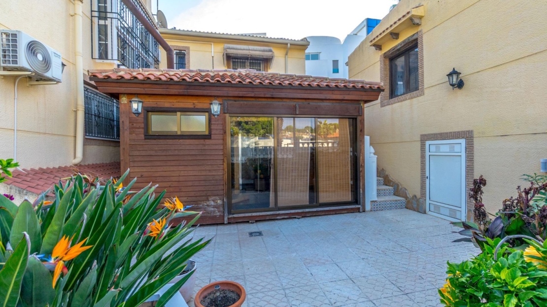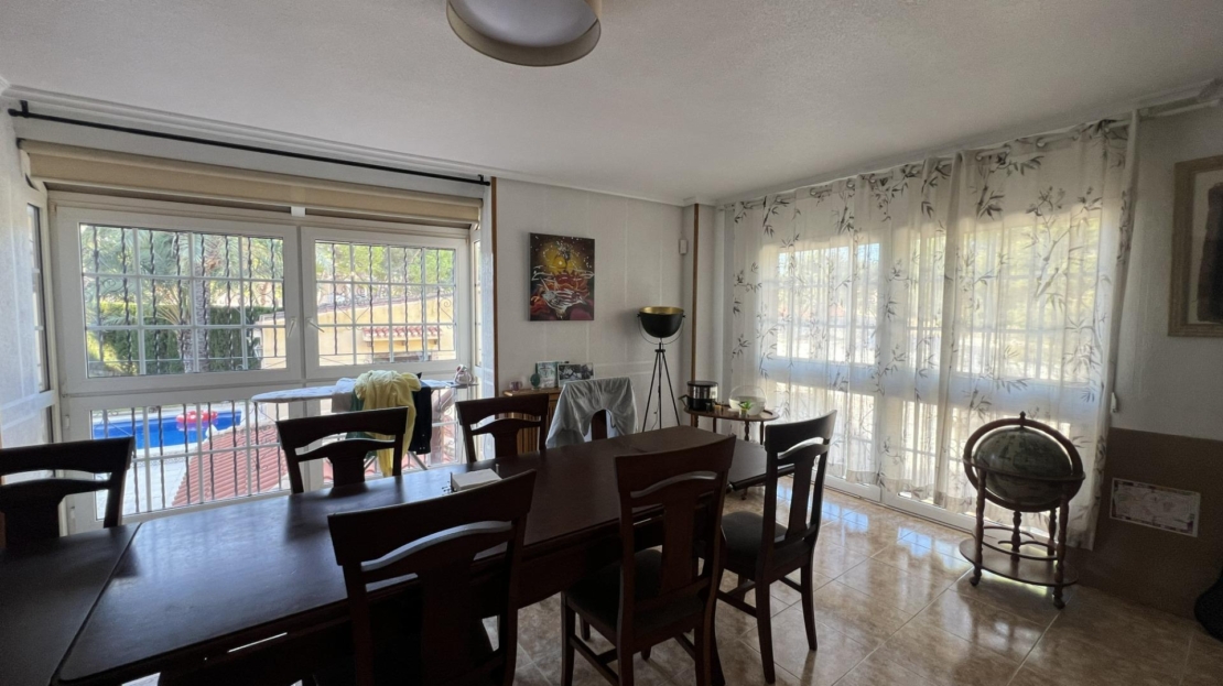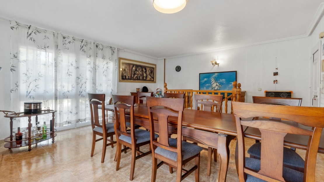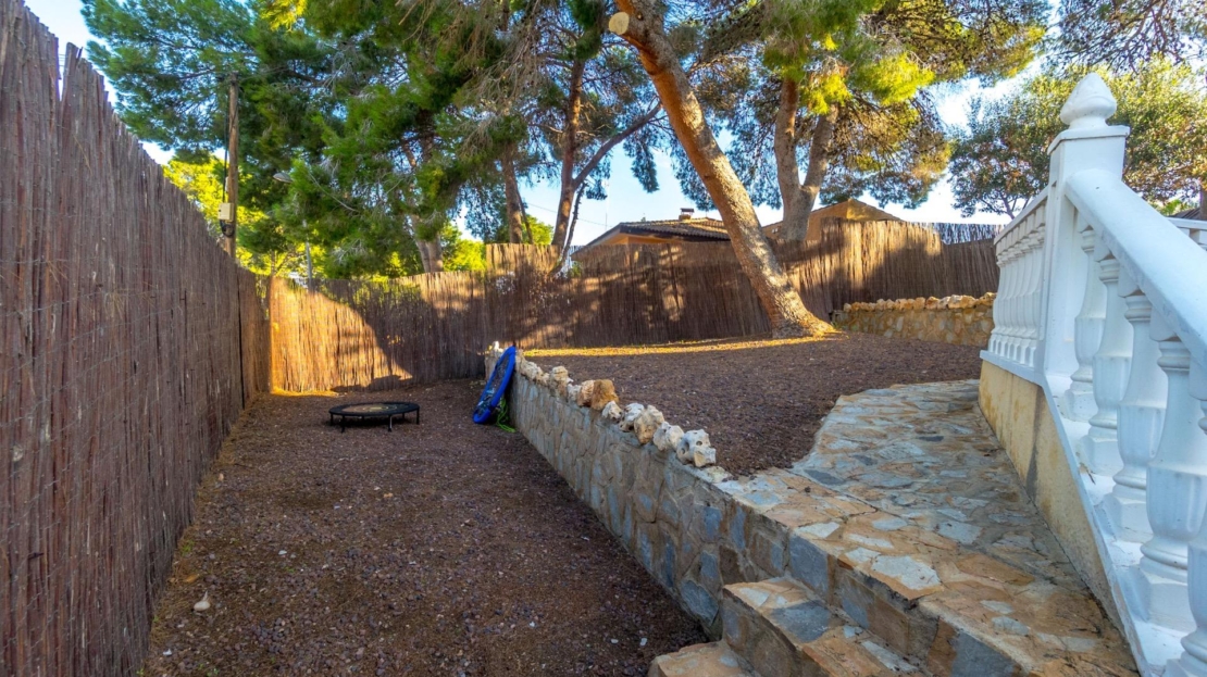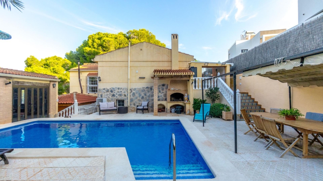 Willa wolnostojąca z prywatnym basenem i dużą działką w Los Balcones Willa wolnostojąca z przestronną działką, prywatnym basenem i strefą relaksu – idealna do zamieszkania przez cały rok. Nieruchomość ma około 200 m² powierzchni zabudowanej i znajduje się na działce o powierzchni ponad 800 m², w prestiżowej dzielnicy Los Balcones – spokojnej i dobrze skomunikowanej części Torrevieja. Willa składa się z trzech sypialni i trzech kompletnych łazienek, przestronnego, jasnego salonu oraz oddzielnej kuchni. Wszystkie pomieszczenia wyposażone są w ogrzewanie z grzejnikami (piec olejowy) oraz klimatyzację typu split. Na zewnątrz znajduje się duży ogród z prywatnym basenem, przeszklony salon zimowy oraz strefa sauny – idealne miejsca do odpoczynku i relaksu. Garaż zamykany pomieści dwa samochody. Komfortowa i zadbana nieruchomość oferująca prywatność, przestrzeń i wysoką jakość – idealna zarówno jako dom całoroczny, jak i wakacyjna rezydencja.