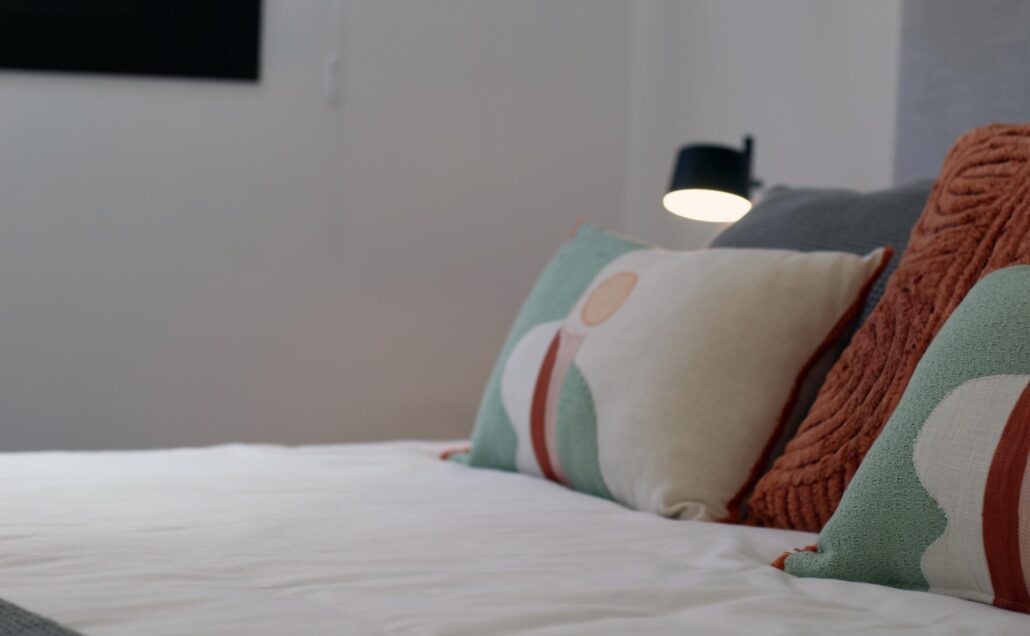 Interiors are appointed with premium materials, including smooth plaster walls, porcelain tile flooring throughout, and fitted wardrobes in each bedroom. The open kitchens come fully equipped with modern cabinetry. Additional comforts include pre-installation for ducted air conditioning and aerothermal systems for energy-efficient hot water.