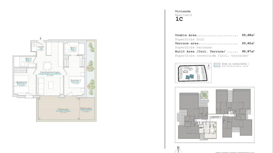 La vivienda cuenta con 2 habitaciones y 2 baños . Distribuidos en una superficie construida de 66, cada rincón de este hogar está diseñado meticulosamente para su bienestar.