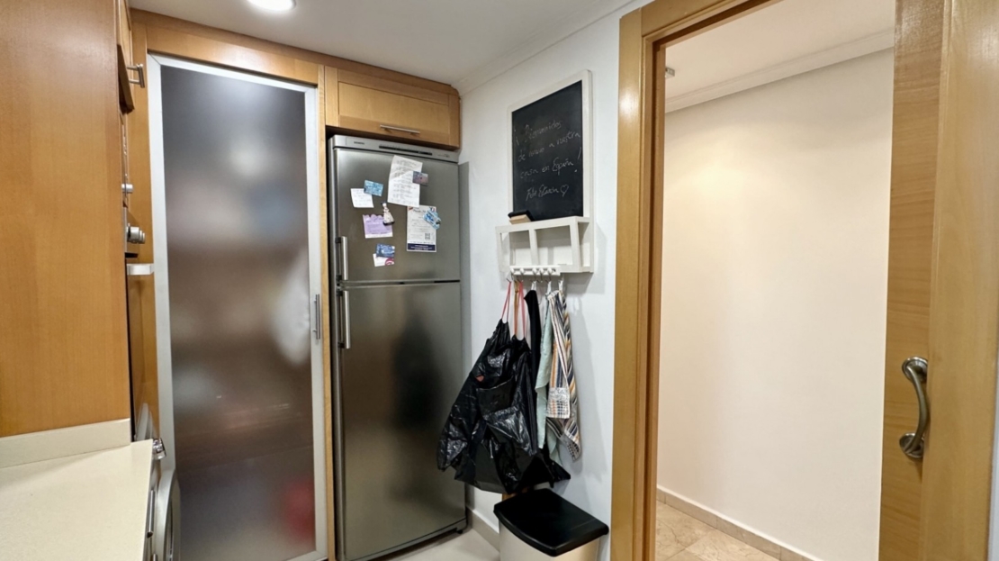 Con una superficie total de 78 m², la vivienda cuenta con un amplio salón, una cocina moderna completamente equipada con encimera de Silestone, placa de inducción, lavavajillas, sistema de ósmosis, campana plana y una gran despensa con luz automática. Dispone de dos dormitorios y dos baños, uno de ellos en suite con bañera. El segundo baño incluye columna de hidromasaje y grifería termostática. Las puertas correderas en cocina y baños optimizan el espacio.
