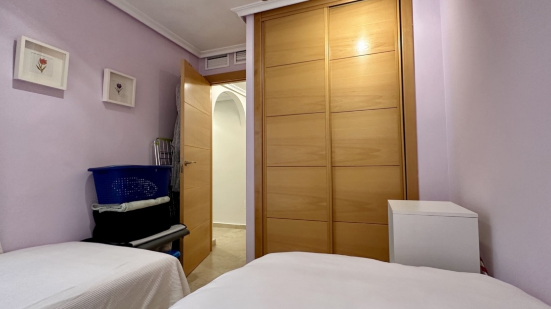 Descubre un apartamento luminoso y cómodo, situado a solo 100 metros del mar en una de las mejores zonas de Guardamar. Ubicado en una segunda planta con ascensor, ofrece vistas al mar desde el salón y el dormitorio principal, orientado al este.