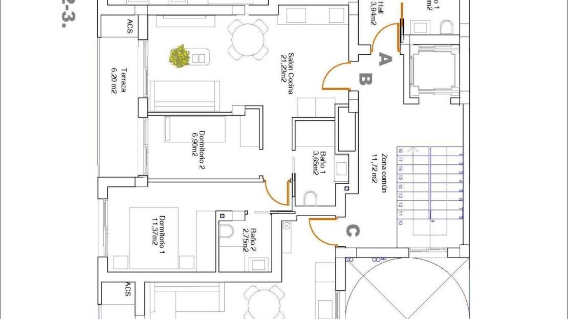 Cada apartamento cuenta con una cocina americana de planta abierta, un luminoso salón-comedor, armarios empotrados y una terraza privada. El edificio incluye un ascensor para 6 personas, y todos los residentes tienen acceso a un solárium comunitario en la azotea con duchas y césped artificial, perfecto para disfrutar del sol y la brisa marina.