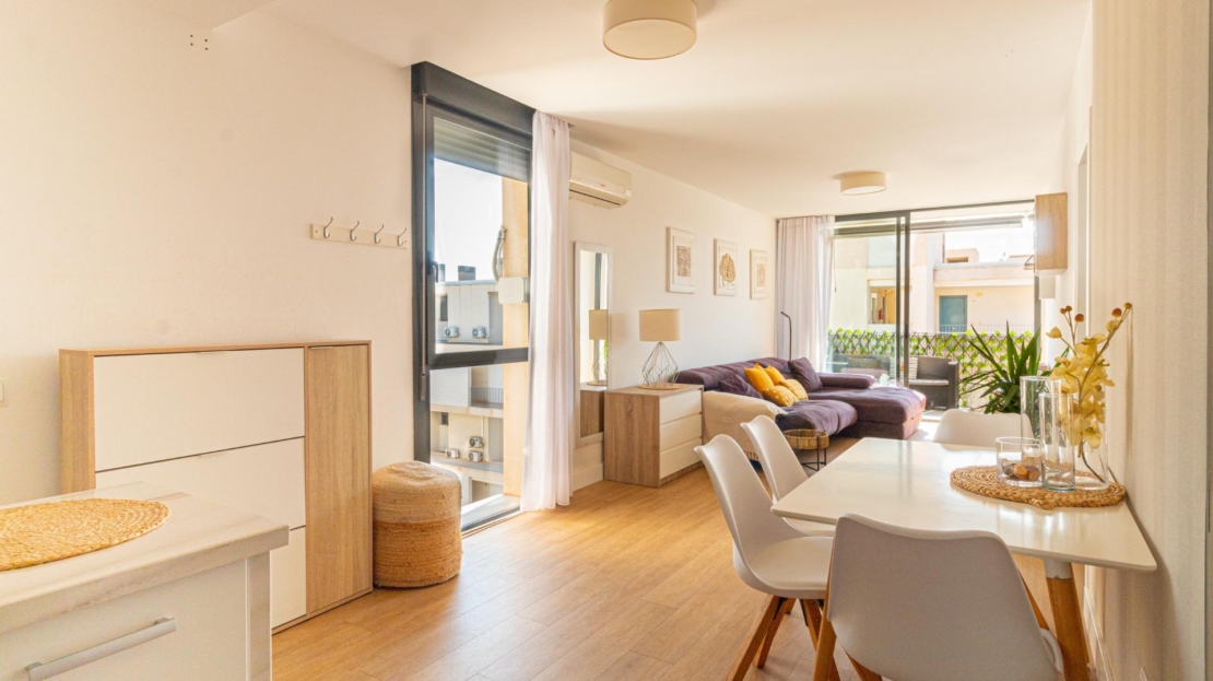 Apartamento en ultima planta en residencial cerrado con piscina y zonas comunes.~Descubre este luminoso y acogedor apartamento de 1 dormitorio con baño en suite, situado en un residencial privado en Los Dolses, una de las zonas más demandadas por su tranquilidad y ambiente familiar.~~La vivienda, muy amplia y totalmente amueblada, destaca por su excelente distribución y su gran terraza de unos 12 m2, orientada al sur-oeste, ideal para disfrutar del sol durante todo el día.~Dispone de una cocina americana totalmente equipada, con acceso directo a un lavadero independiente que incluye lavadora y secadora.~~El residencial ofrece excelentes zonas comunes, con piscina comunitaria, zona infantil y área de barbacoa, todo dentro de un entorno cerrado y seguro. Además, el apartamento incluye plaza de garaje subterráneo y trastero.~~Una oportunidad perfecta para quienes buscan una vivienda cómoda, luminosa y lista para entrar a vivir, en una urbanización con todo lo necesario para disfrutar del día a día.~Condiciones especiales de venta.