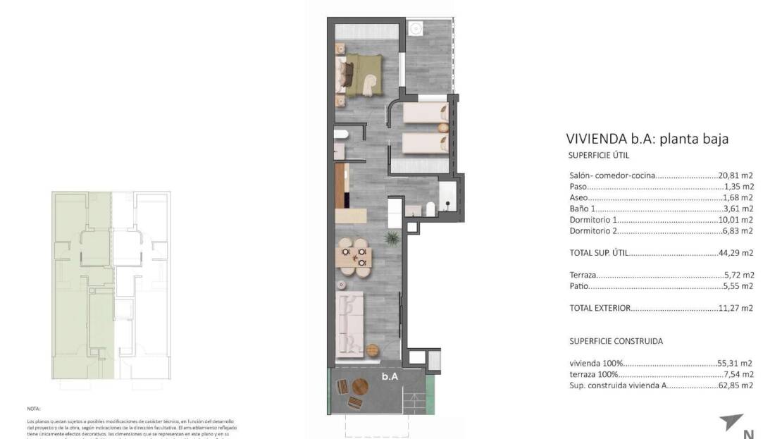 Cada apartamento cuenta con 2 dormitorios y 1 o 2 baños, cuidadosamente diseñados para maximizar el espacio y la luz natural. Los interiores cuentan con: