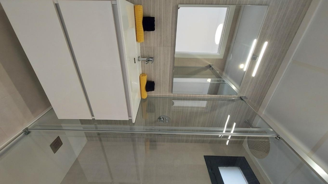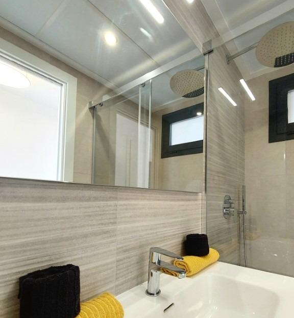 Baños completamente equipados, con muebles, mamparas y sistema de iluminación LED.