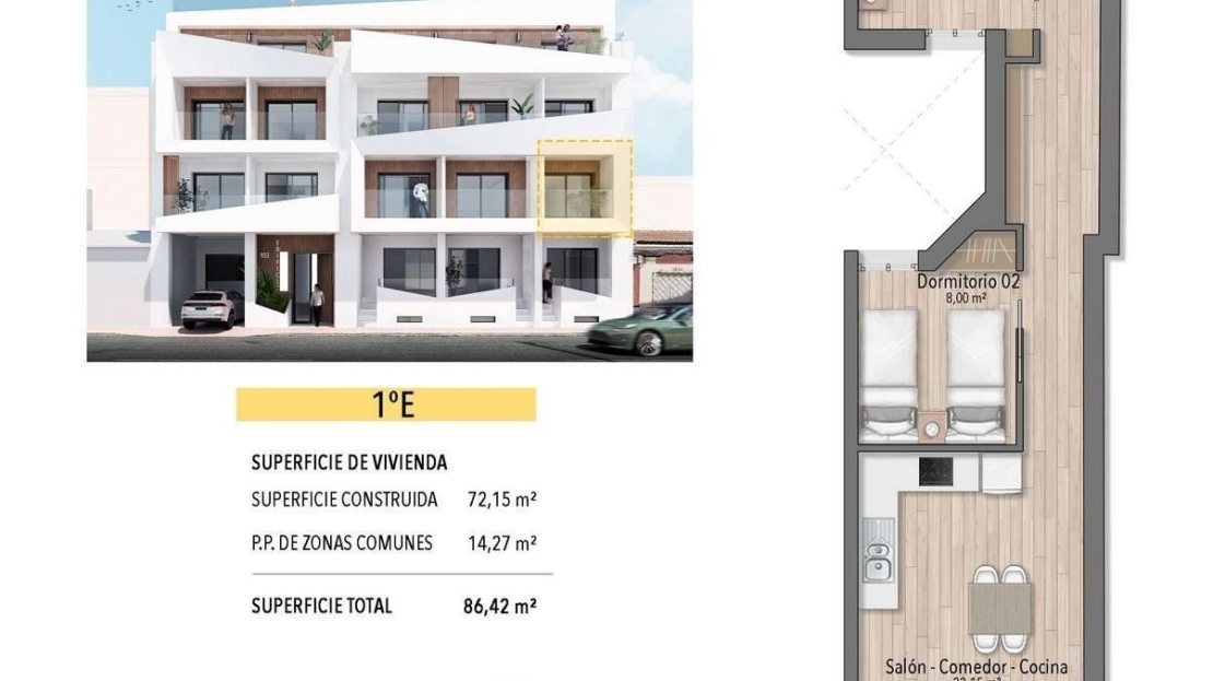 Los residentes pueden disfrutar de la piscina comunitaria y el solarium de la azotea, ideales para relajarse tras un día de playa. El edificio también ofrece plazas de aparcamiento subterráneo opcionales y trasteros, disponibles por un coste adicional, proporcionando mayor comodidad y seguridad a los residentes.