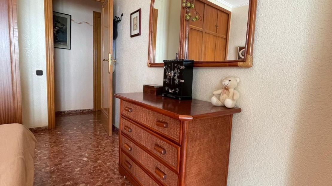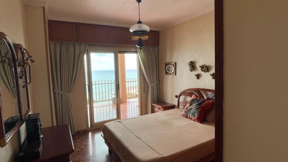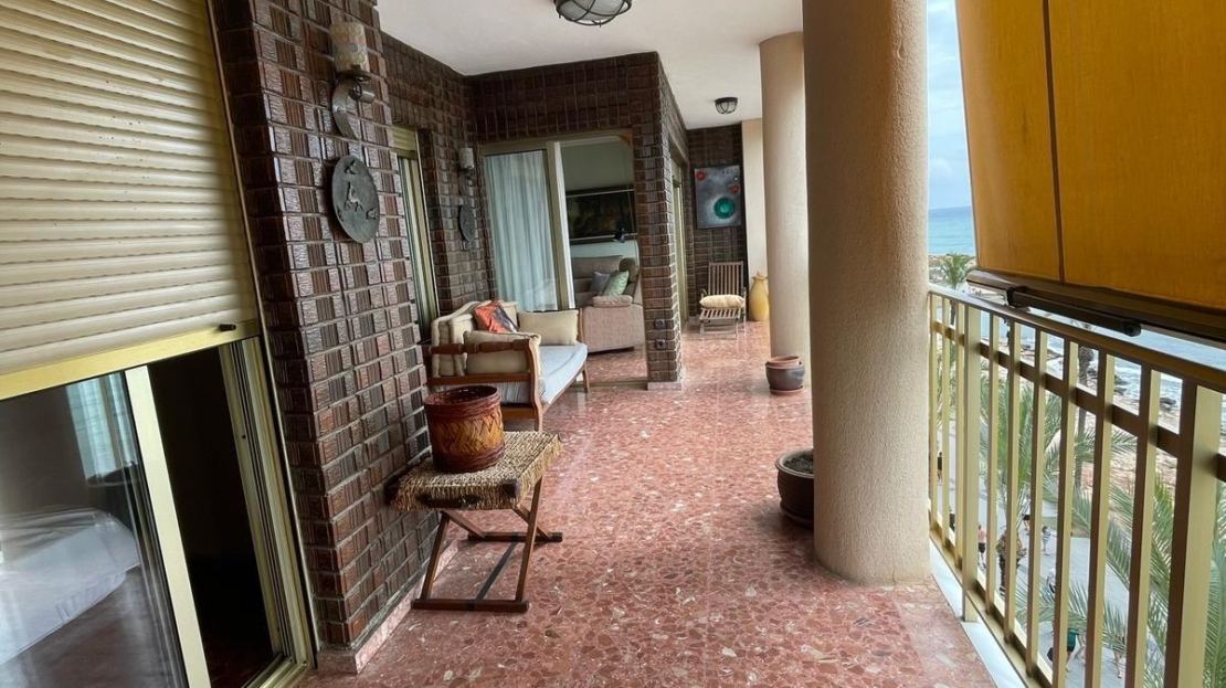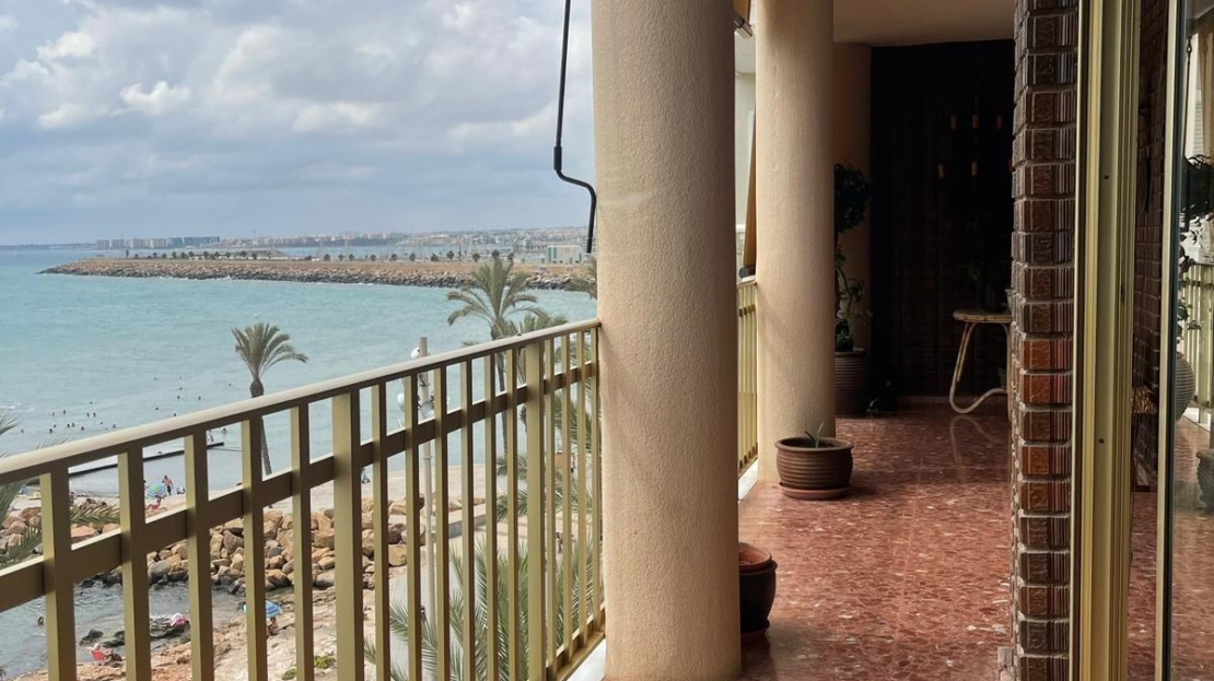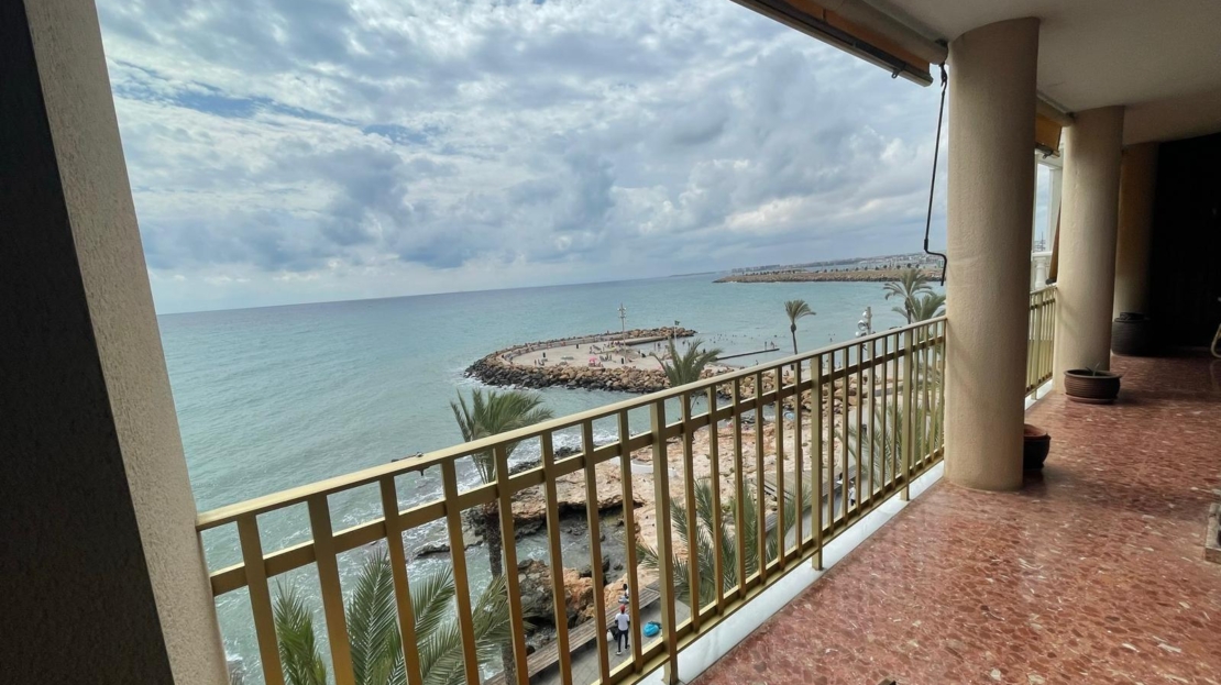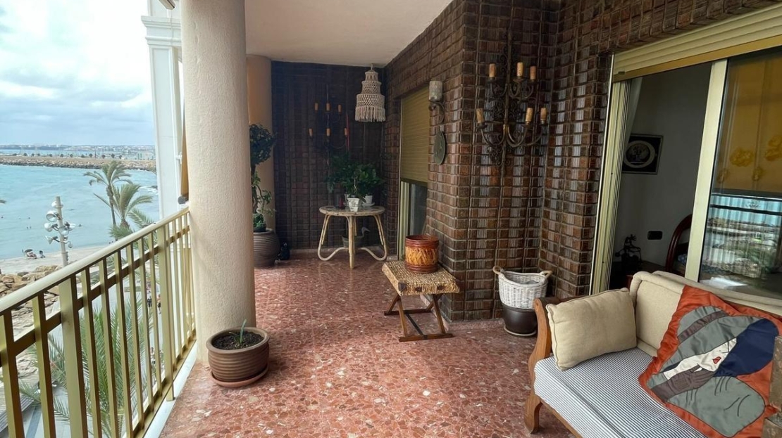 Exclusiva vivienda en primera línea del Paseo Juan Aparicio – Torrevieja Descubre esta magnífica propiedad situada en pleno corazón de Torrevieja, en primera línea del emblemático Paseo Juan Aparicio, con impresionantes vistas abiertas al mar Mediterráneo. Con 160 m² construidos, esta vivienda destaca por su amplitud y excelente distribución, ideal tanto como residencia habitual como para inversión. Dispone de 4 dormitorios y 3 baños, ofreciendo espacio y comodidad para toda la familia o para quienes buscan una propiedad versátil junto al mar. El amplio y luminoso salón-comedor se abre a una agradable terraza con vistas panorámicas al mar, un espacio perfecto para relajarse y disfrutar de inolvidables atardeceres. La cocina es independiente y cuenta con galería, aportando funcionalidad y practicidad al día a día. La vivienda incluye además armarios empotrados, trastero y plaza de garaje, un valor añadido clave en esta zona tan demandada. Ubicada en una 4ª planta, se encuentra en buen estado de conservación, con gran potencial de actualización para adaptarla a un estilo más contemporáneo y aumentar su valor. Gastos: IBI: 607 €/año Comunidad: 815 €/año Una oportunidad única de adquirir una propiedad en una de las ubicaciones más cotizadas de la Costa Blanca, rodeada de todos los servicios, restaurantes y zonas de ocio, con acceso directo al paseo marítimo. Ideal tanto para vivir todo el año como para obtener una alta rentabilidad como inversión