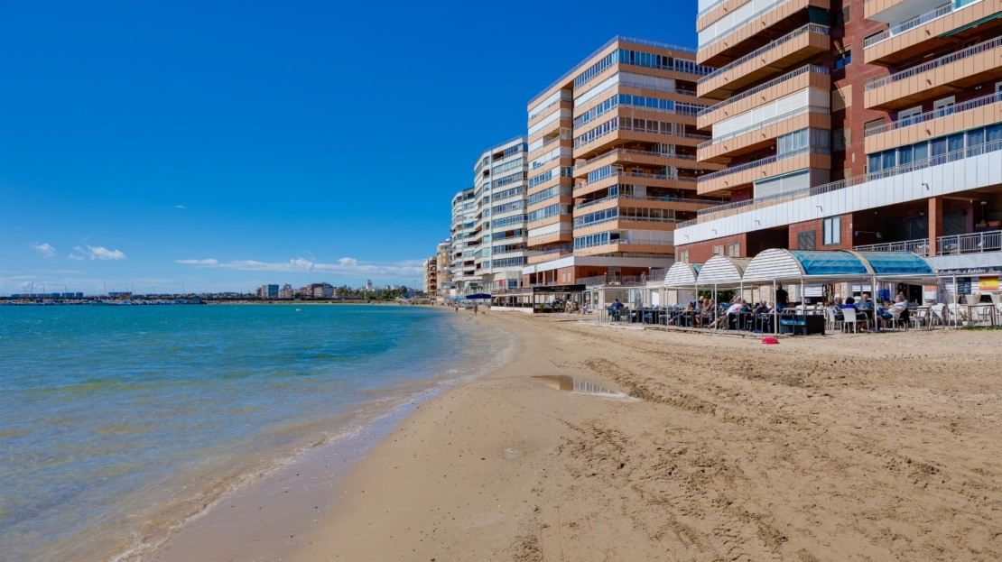 Despertar cada mañana frente al mar ya no es un sueño, es una oportunidad real en Playa del Acequión, Torrevieja. Este apartamento de 100 m², completamente reformado y en excelente estado, combina amplitud, luz natural y una ubicación privilegiada en primera línea.Precio 389.500 €Características principales 100 m² construidos Terraza de 18 m² con vistas frontales al mar 3 dormitorios y 2 baños Cocina americana abierta Orientación sureste Piscina comunitaria Garaje incluido Primera línea de playaIBI 279 €Comunidad 153 € trimestreUbicado a pocos pasos de bares, restaurantes, supermercados, farmacias, centros comerciales y parques , y a aproximadamente 45 minutos del Aeropuerto de Alicante.Una propiedad exclusiva para quienes buscan calidad de vida junto al mar Agenda tu visita hoy mismo y descubre tu próximo hogar en la Costa Blanca.