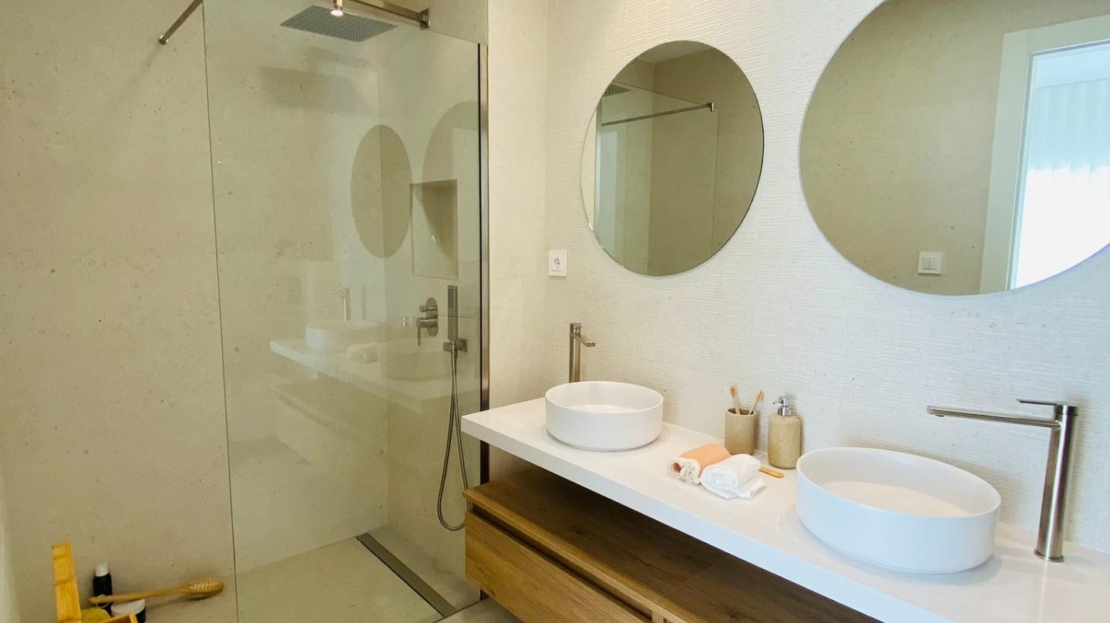 Cada bungalow incluye un salón-comedor luminoso y abierto y una cocina totalmente equipada con grandes puertas correderas que conectan a la perfección los espacios interiores y exteriores. Los dormitorios cuentan con armarios empotrados. El complejo dispone de aire acondicionado por conductos y ascensor para facilitar el acceso a las plantas superiores. También se incluyen plazas de aparcamiento privado para todas las unidades.