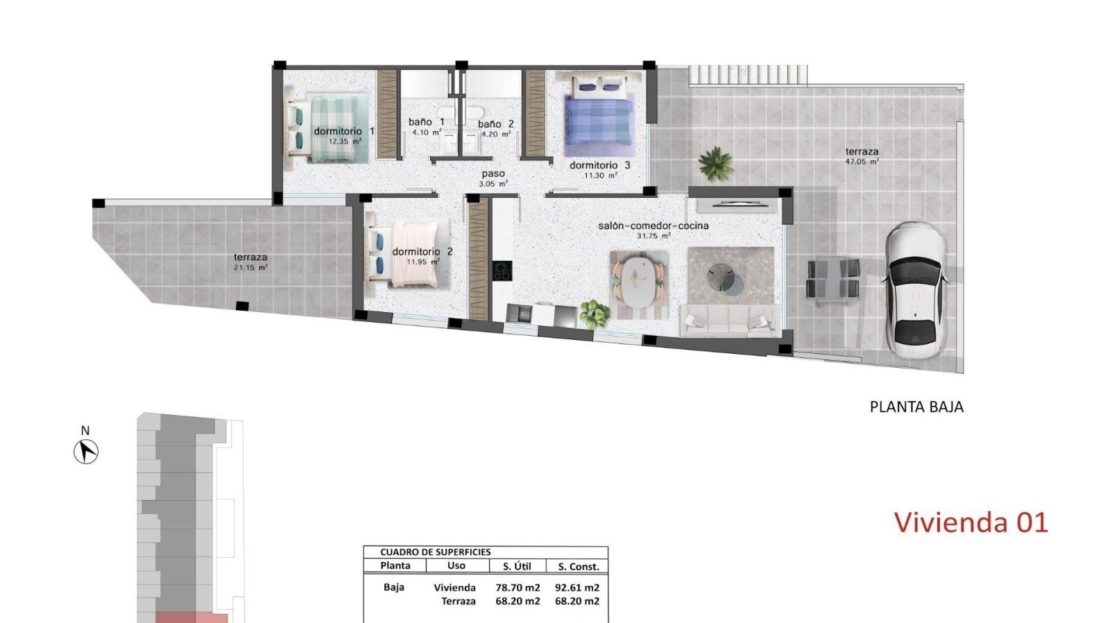 Cada bungalow incluye un salón-comedor luminoso y abierto y una cocina totalmente equipada con grandes puertas correderas que conectan a la perfección los espacios interiores y exteriores. Los dormitorios cuentan con armarios empotrados. El complejo dispone de aire acondicionado por conductos y ascensor para facilitar el acceso a las plantas superiores. También se incluyen plazas de aparcamiento privado para todas las unidades.