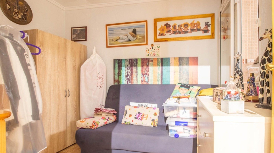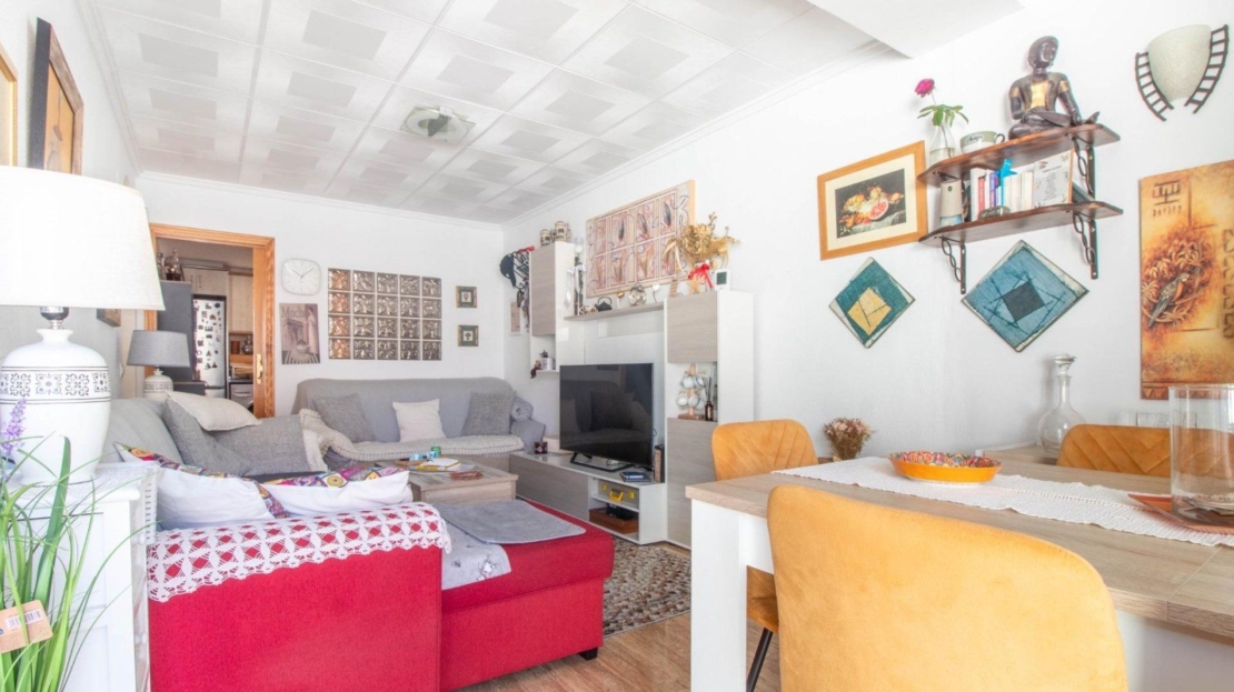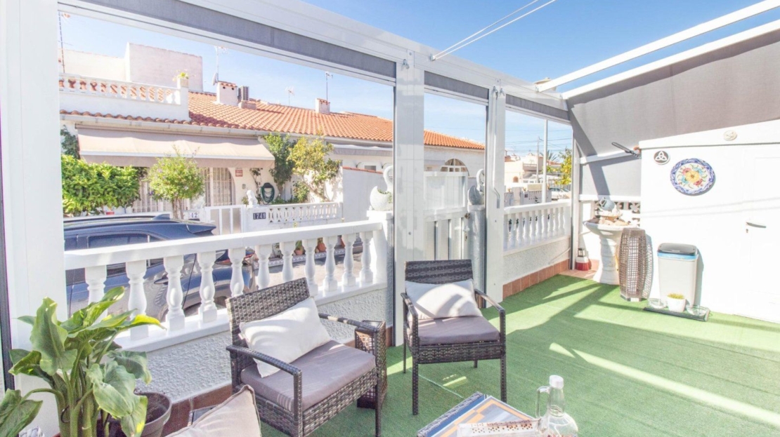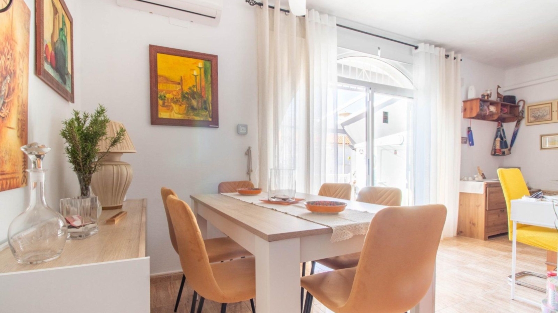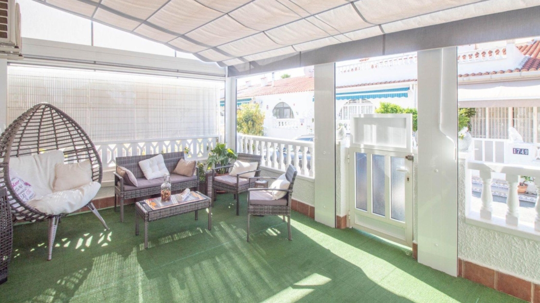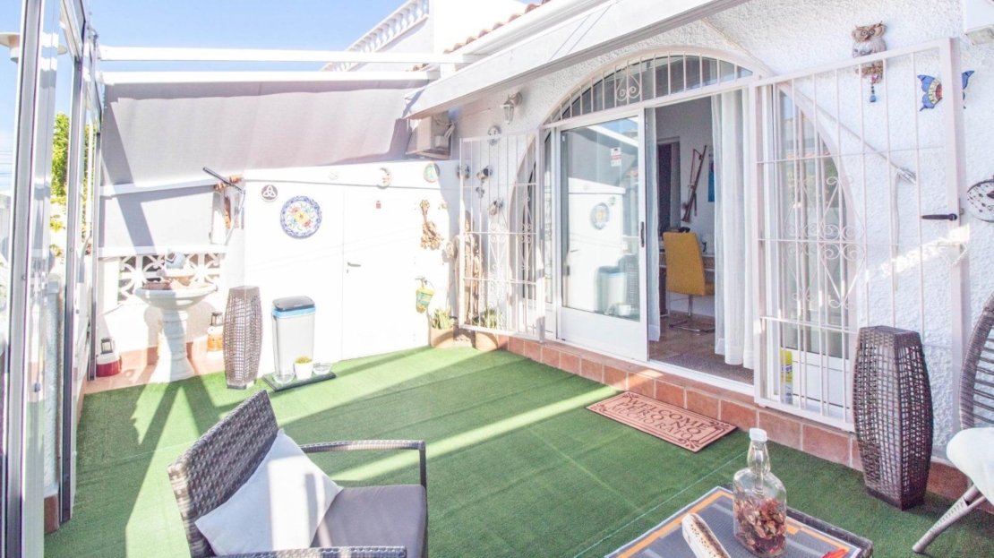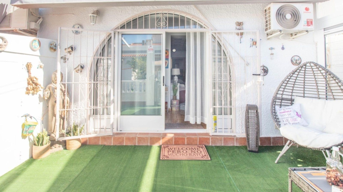 Os presentamos este encantador bungalow en planta baja, se encuentra en la urbanización El Chaparral, en Torrevieja. La propiedad ofrece tranquilidad y privacidad, ya que no tiene vecinos arriba. Cuenta con dos dormitorios espaciosos y un baño completo, ideal para familias o parejas que buscan comodidad. La cocina está completamente equipada, lista para preparar deliciosas comidas. El salón comedor es luminoso y acogedor, perfecto para relajarse o recibir visitas.~~Además, dispone de una terraza soleada con toldo, perfecta para disfrutar del clima al aire libre y momentos de ocio. La terraza también incluye un trastero para mayor comodidad y almacenamiento adicional. Residencial con zona de aparcamiento para residentes.~~¡Una excelente oportunidad para vivir en un entorno tranquilo y bien ubicado en Torrevieja!