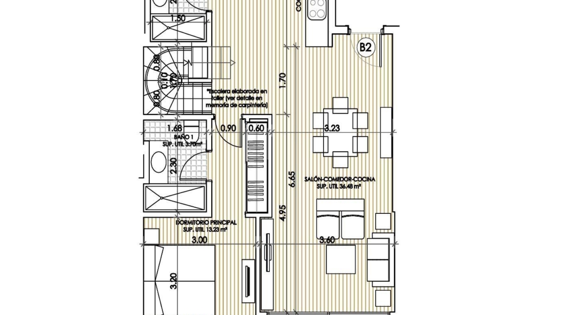 Cocina americana y salón, 2 amplios dormitorios con armarios empotrados, 2 baños, lavadero.