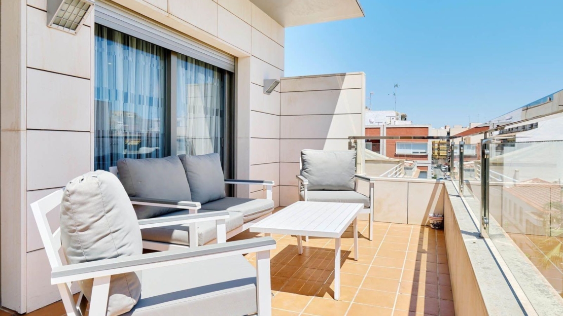 ¡Descubre el ático de tus sueños en Torrevieja! Este impresionante ático de 228 m² te ofrece una vida de lujo a solo 600 metros de la playa Acequión. Reformado con gusto, cuenta con 3 amplias habitaciones y 3 baños modernos. El suelo de cerámico aporta un toque elegante y fácil de mantener. Disfruta del aire acondicionado central y de los armarios empotrados que optimizan el espacio. La vivienda incluye muebles, televisión y una cocina equipada, lista para entrar a vivir. El acceso privado mediante ascensor te lleva directamente a tu hogar, donde la luz natural inunda cada rincón gracias a sus grandes ventanales. Relájate en el balcón o en la terraza privada de 80 metros, perfecta para disfrutar del sol y las vistas. Además, el solárium es ideal para momentos de tranquilidad o reuniones con amigos. Este solarium es de uso y disfrute. Ubicado en una zona céntrica, este ático está rodeado de todas las comodidades: supermercados, centros comerciales, colegios, hospitales y parques. La buena conexión con autobuses facilita tu día a día. No pierdas la oportunidad de vivir en un entorno privilegiado, cerca de la costa y con todos los servicios al alcance. ¡Ven a visitarlo y enamórate de tu nuevo hogar en Torrevieja!PRIVADA DE UNOS 80 METROS. TODA LA PROPIEDAD HA SIO CONSTRUIDA CON LOS MEJORES MATERIALES DE CONSTRUCCIÓN Y CUENTA CON NUMEROSOS GADGETS TECNOLÓGICOS DE VIVIENDA INTELIGENTE.