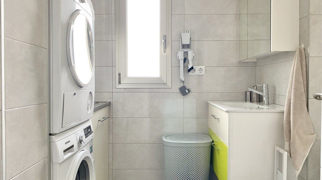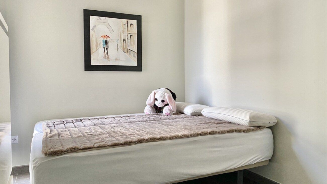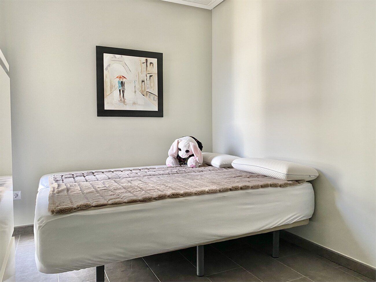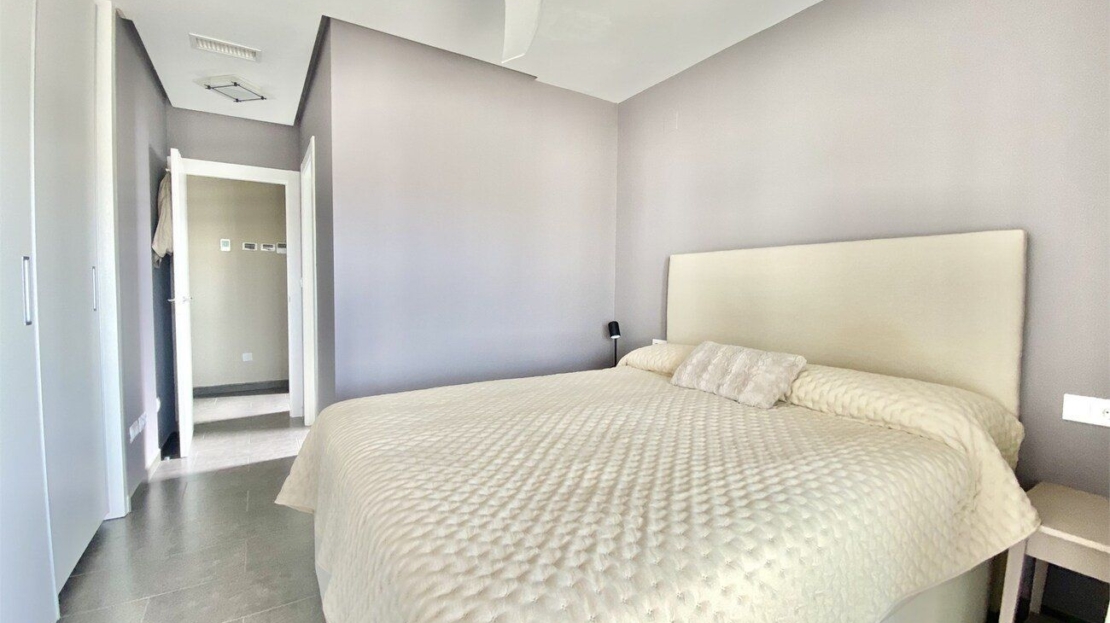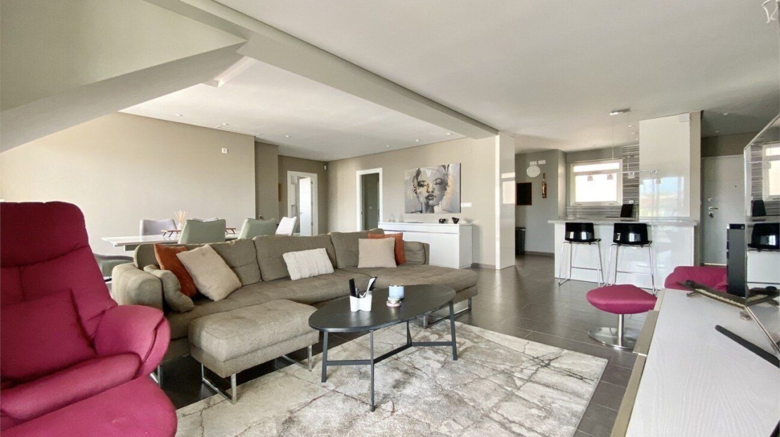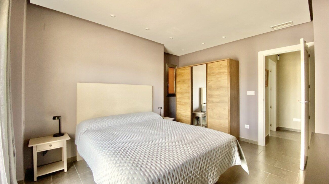 Penthouse with 4 bedrooms and 3 bathrooms.This beautiful apartment has lots of space both inside and out.A large living room has plenty of space for both a lounge and a dining area. Large kitchen with good cupboard space and table space.Furniture and white goods are included. There are several new beds in the apartment.Large south-facing balcony with access from both the living room and bedroom.Large roof terrace with outdoor shower and storage. The roof terrace has a beautiful view of the town and the sea. Where you can enjoy the sun most of the day.The complex has both an outdoor and an indoor pool, and a fitness facility.