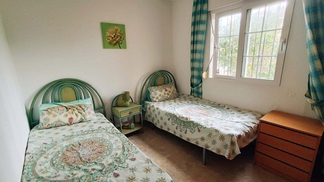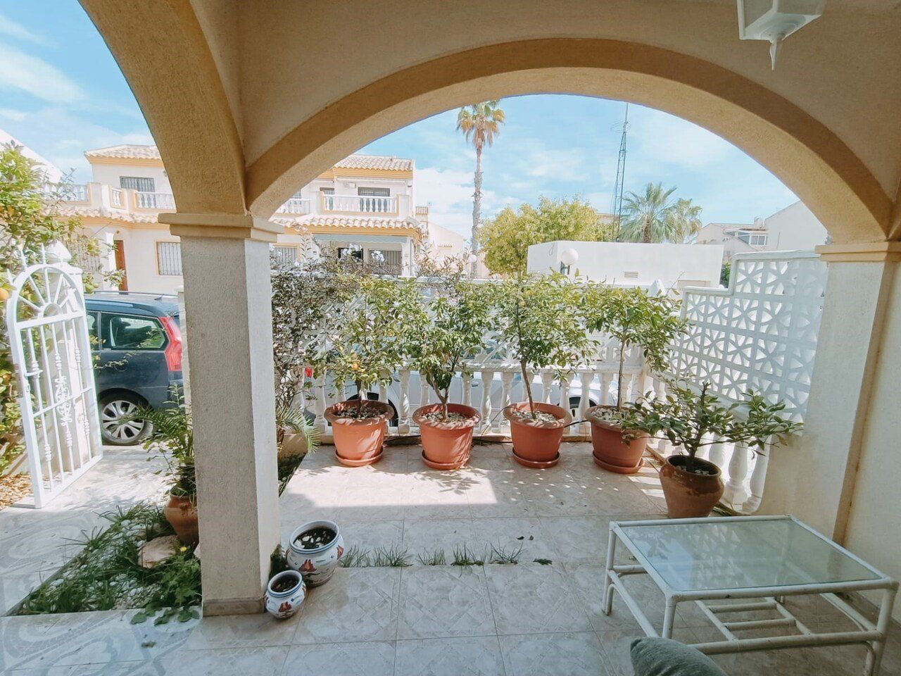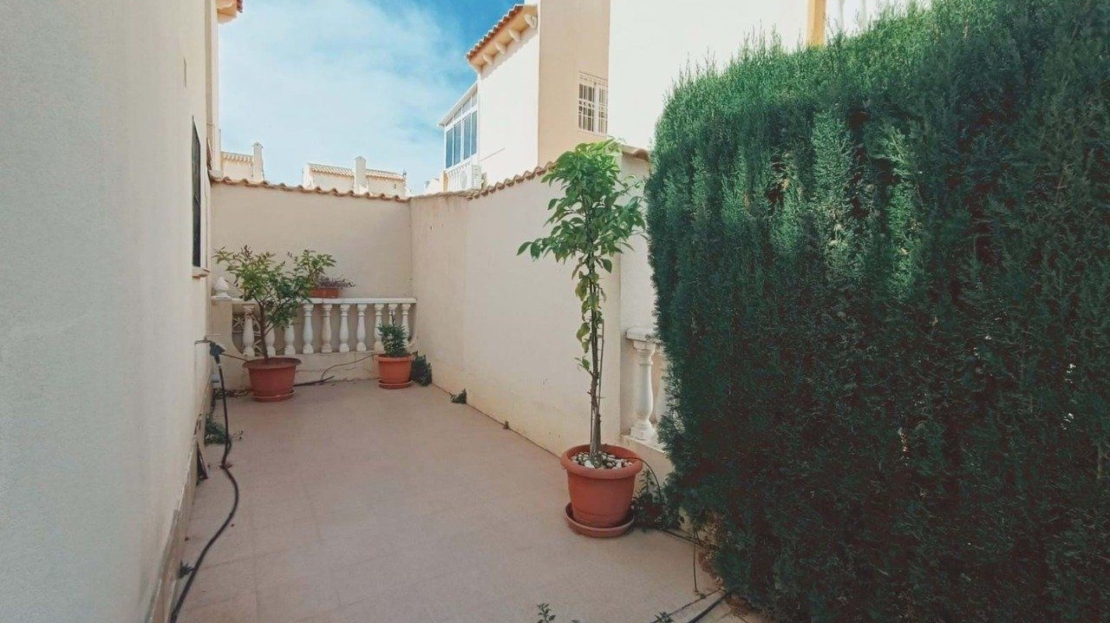 We are pleased to present this 3 bedroom quad house with pool views in a central location in Playa Flamenca. This popular urbanisation of Perla del Mar is situated within walking distance of many amenities including Zenia Boulevard, the popular Saturday market and many bars and restaurants. The beach is a 20 minute walk as is the Flamenca Beach commercial centre full of some of the best restaurants in the area.Located on a quiet street this quad house has a established garden with fruit trees and a gated driveway. The covered terrace area is ideal for relaxing or entertaining. Inside is a bright open plan living dining area which is air conditioned and this leads to the separate fully fitted kitchen complete with oven, hob and washing machine. From here you have access to a small pantry, storage area.Downstairs is a good sized bedroom with fitted wardrobes and a shower room.Heading upstairs you find 2 good sized bedrooms both with fitted wardrobes and the primary having access to a balcony with views over the pool area and this room is also air conditioned. A family bathroom with bath and shower completes this leve.At the top of the property is a private solarium, ideal for enjoying the sun with views of the surrounding area down to the sea.Playa Flamenca is situated in the heart of Orihuela Costa hosting several commercial centres with bars, restaurants and shops all within walking distance. It is also home to the popular Saturday market. There are 3 beaches including a specific dog beach for all dog lovers. The famous Zenia Boulevard is only a short drive away.