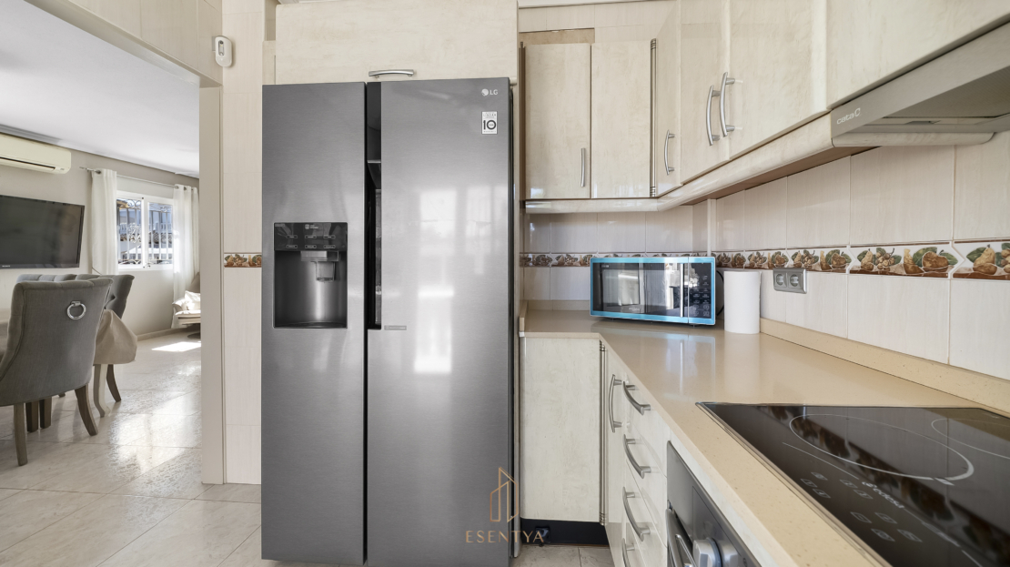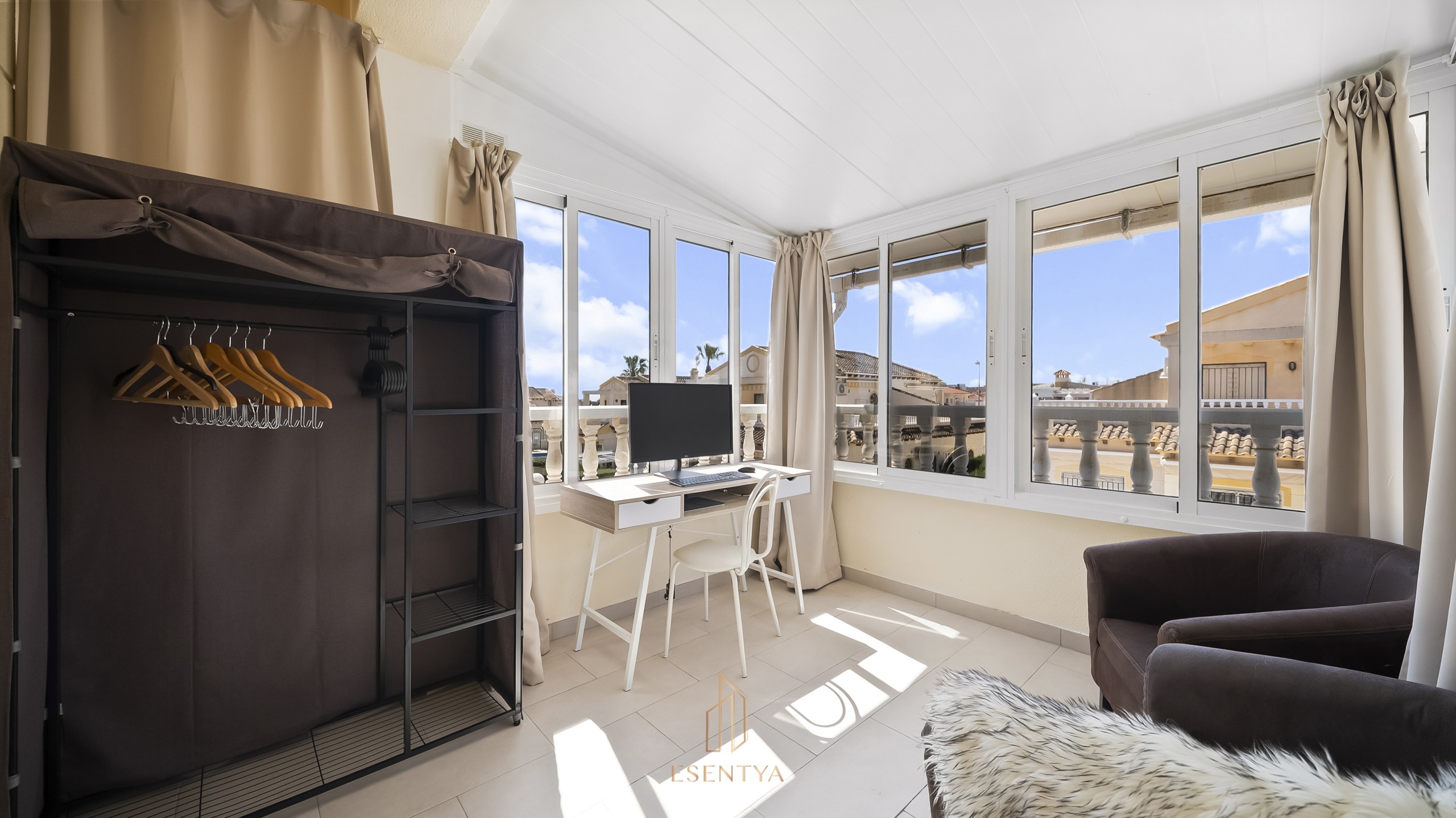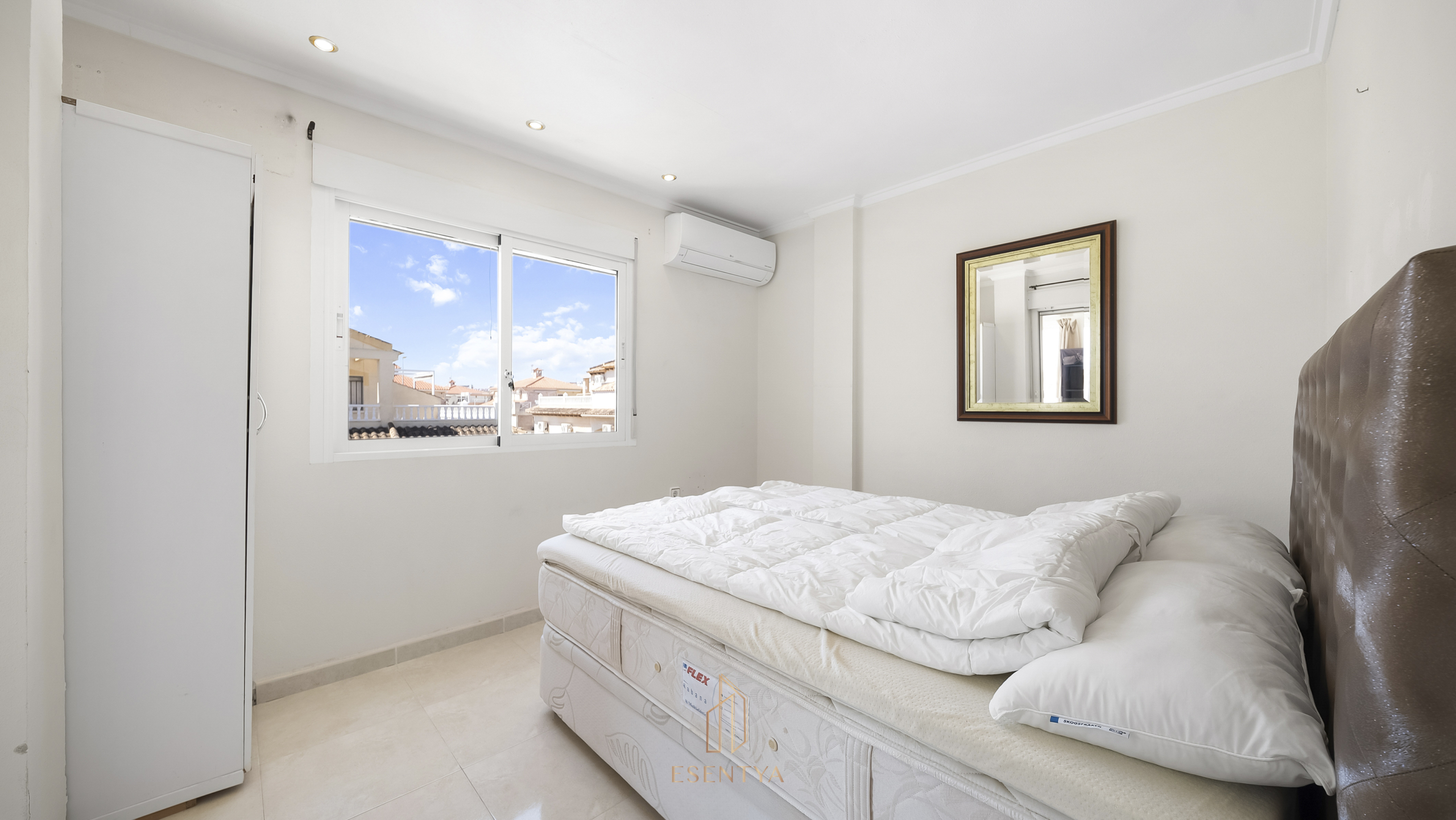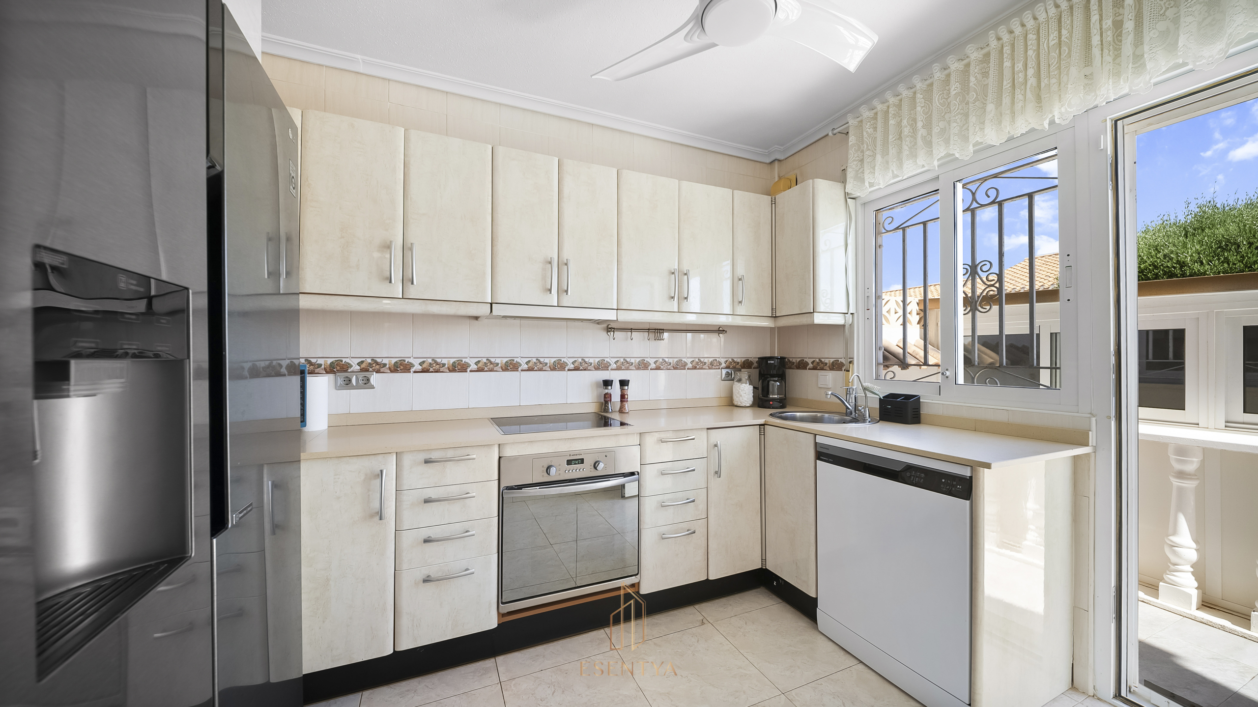 Amplia vivienda adosada pareada con orientación sur, situada en una zona residencial muy demandada, a poca distancia a pie de La Zenia Boulevard, restaurantes, mercado y prácticamente todos los servicios necesarios. La propiedad se encuentra en una comunidad cerrada y dispone de piscina comunitaria.