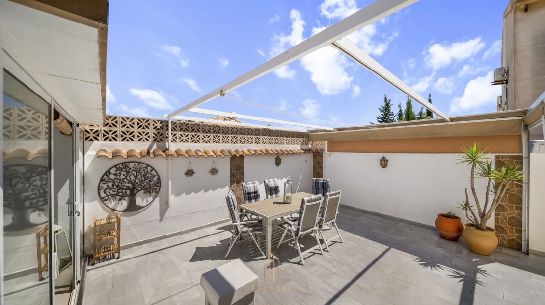 La vivienda dispone de una terraza parcialmente cubierta en la entrada y un agradable patio trasero con amplia terraza y una estancia acristalada que puede utilizarse como comedor o trastero. También cuenta con un trastero adicional. Aparcamiento dentro de la parcela.