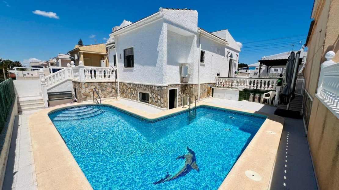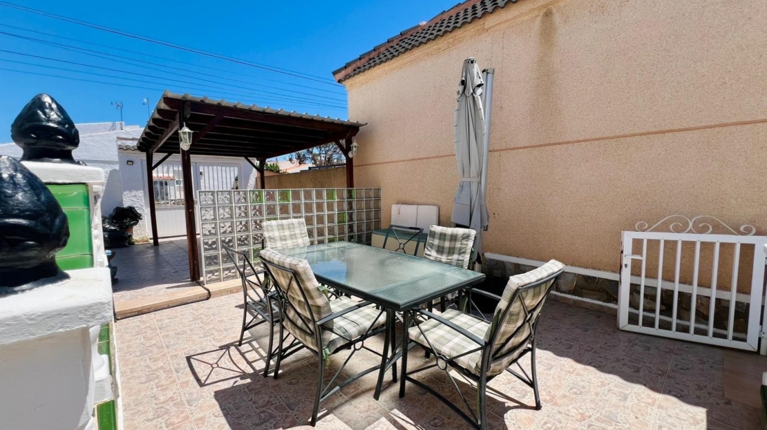 Le presentamos un adosado de 114 m² sobre una parcela de 287 m² en la urbanización San Luis (Torrevieja, Alicante):