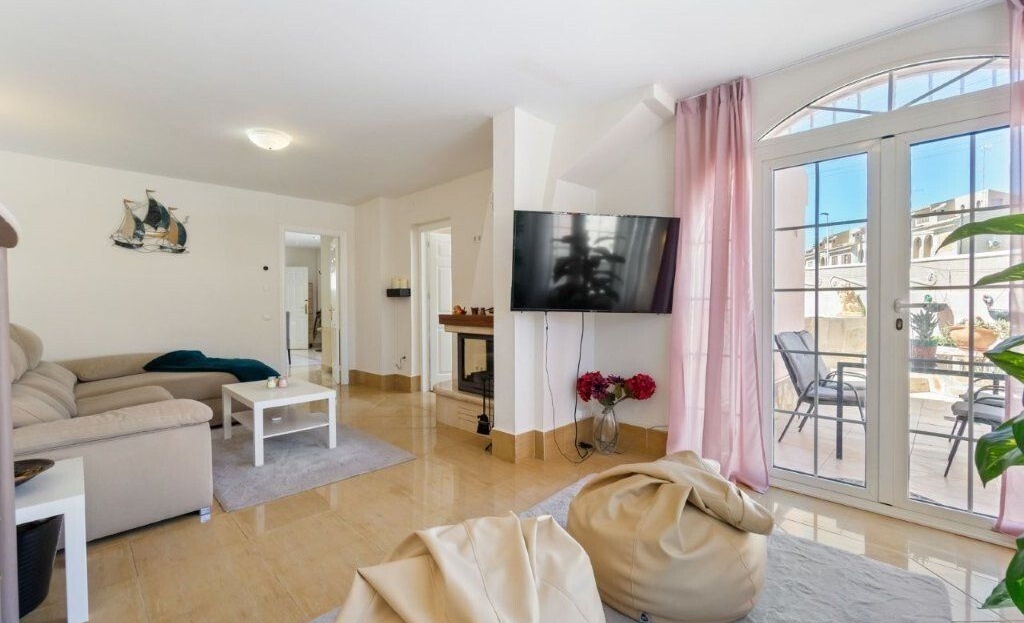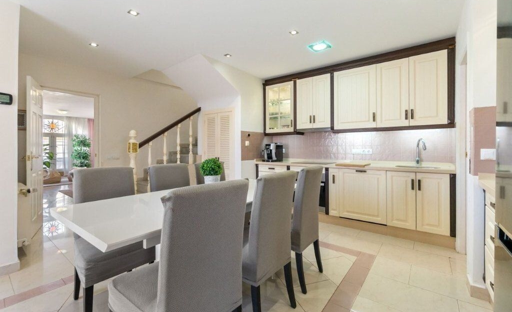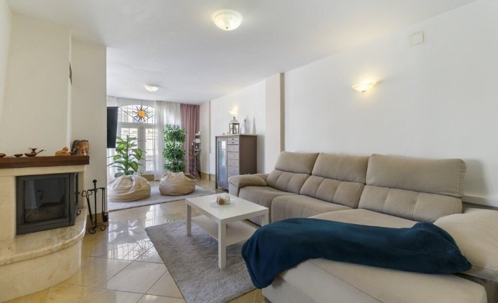 This unique townhouse is 164 m2. It is over 2 levels and has 5 bedrooms and 2 bathrooms and 1 toilet.There is a large living room with fireplace, a kitchen with dining area, laundry room, sauna and several storage rooms.The special thing about the property is that it has a private pool, several large terraces and outdoor areas as well as very good sun conditions.There is also a communal pool area in the urbanization.The home is sold furnished, with appliances and air conditioning.Contact us for more information and a viewing.Price: 399,000 euros + costsFacts:Area: 164 m25 bedrooms3 bathroomsFurnishedWhite goodsCommunal poolPrivate poolSaunaLaundry roomStorage room2 floorsAir conditioningYear of construction: 1986Property tax: 301 euros per yearCommunal costs: 425 euros per yearEnergy certificate: E