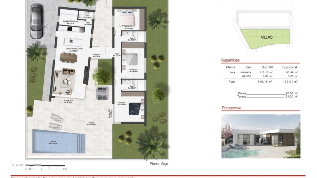 La vivienda cuenta con 3 habitaciones y 2 baños. Distribuidos en una superficie construida de 133 m², cada rincón de este hogar está diseñado meticulosamente para su bienestar.