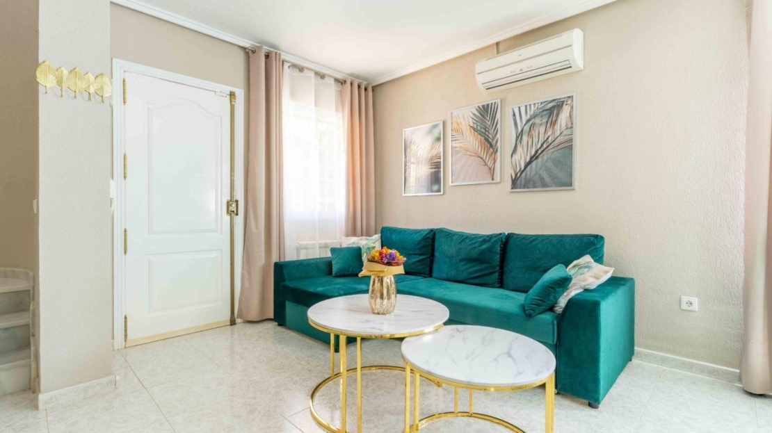 Os presento esta Chalet Independiente de dos plantas con jardín privado. Esta ubicada en un complejo tranquilo en Punta Prima, Orihuela Costa. Es una de las zonas más codiciadas de la Costa Blanca. Esta en una zona residencial muy valorada, permiten disfrutar del clima mediterráneo con total tranquilidad y con estilo de vida activo y saludable. Se encuentra, a tan solo 5 minutos de la playa y a 3 minutos del centro comercial La Zenia en coche. Al entrar, nos encontramos un precioso jardín ajardinado, bien cuidado, donde tiene zona de descanso y además cuenta con aparcamiento de coche en la parcela. Entrando a la vivienda nos encontramos un grande salón reformado. Una cocina independiente equipada junto con la lavandería, muy cómodo para la organización del hogar. Cuenta con 3 dormitorios amueblados y 2 baños reformados con suelo radiante. También tenemos una grande y luminosa terraza de unos 20m con vistas despejadas. Se encuentra en una urbanización tranquila y bien comunicada en Punta Prima, Orihuela Costa. La urbanización cuenta con piscina comunitaria y plazas de aparcamiento. ¡No dejes pasar esta oportunidad y ven a visitarlo!