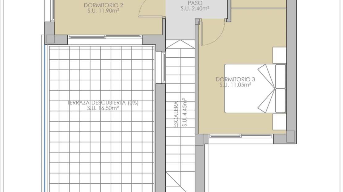 Cada villa está diseñada con una distribución contemporánea en dos plantas, con 3 dormitorios y 2 baños. La primera planta cuenta con una terraza descubierta y hay un solárium en la azotea disponible con un coste adicional.