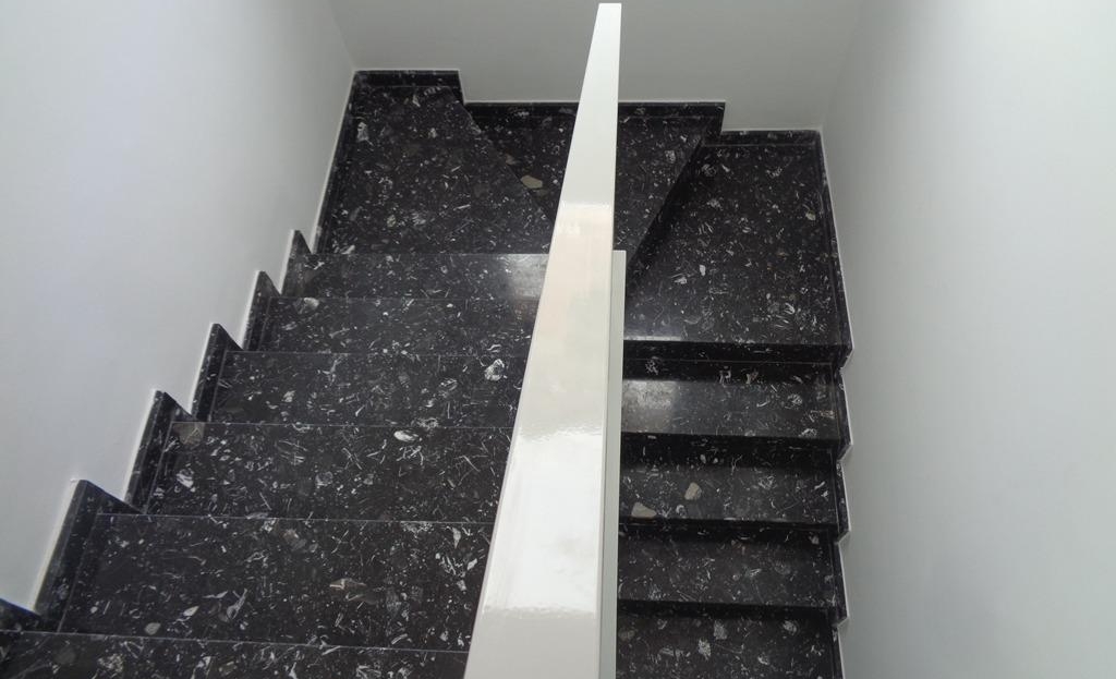 Escalera de mármol (crema, blanco o gris) y barandillas incluidas, más barandillas para el porche delantero.
