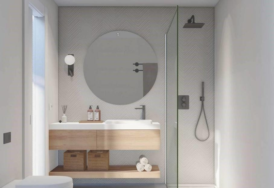 Los baños cuentan con sanitarios de diseño moderno, de porcelana vitrificada acabada en blanco, de la marca Roca y modelo Gap, con grifería monomando cromada o negro mate a elegir.