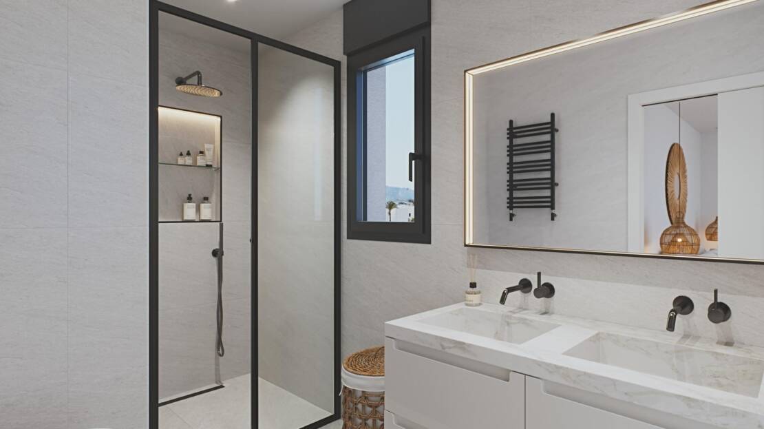 Baños con muebles, espejos, mamparas de ducha y calentadores de toallas
