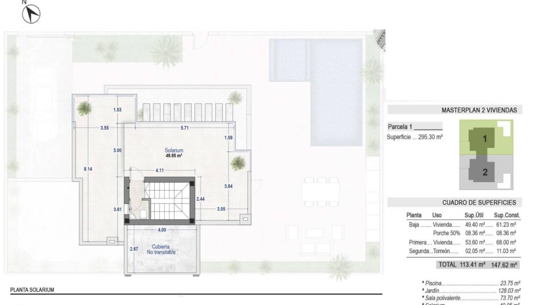 Cada villa ofrece 220 m² de superficie habitable distribuidos en un sótano, dos plantas principales y un solárium en la azotea, situados en generosas parcelas de 295 m². Las viviendas cuentan con 4 dormitorios y 4 baños (3 en suite), lo que proporciona un amplio espacio para la familia y los invitados. La piscina privada con zona de jacuzzi, las amplias terrazas y el solárium en la azotea con cocina de verano y aseo invitan a disfrutar del excepcional clima de la región durante todo el año.