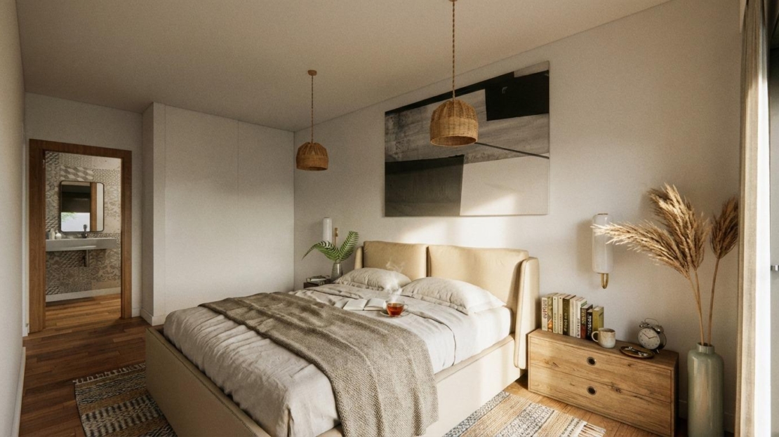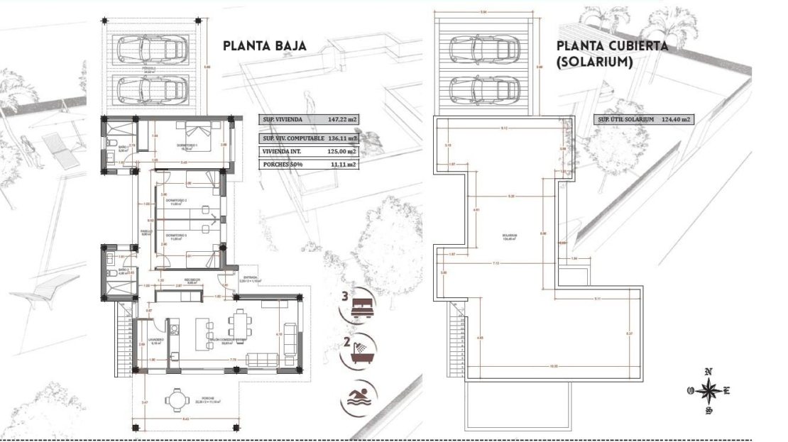 La villa se distribuye en una sola planta y ha sido diseñada para combinar comodidad, funcionalidad y luz natural. Ofrece 3 dormitorios y 2 baños, incluido un dormitorio principal con baño en suite. La sala de estar y el comedor de planta abierta conectan a la perfección con la moderna cocina, creando un espacio luminoso y acogedor.