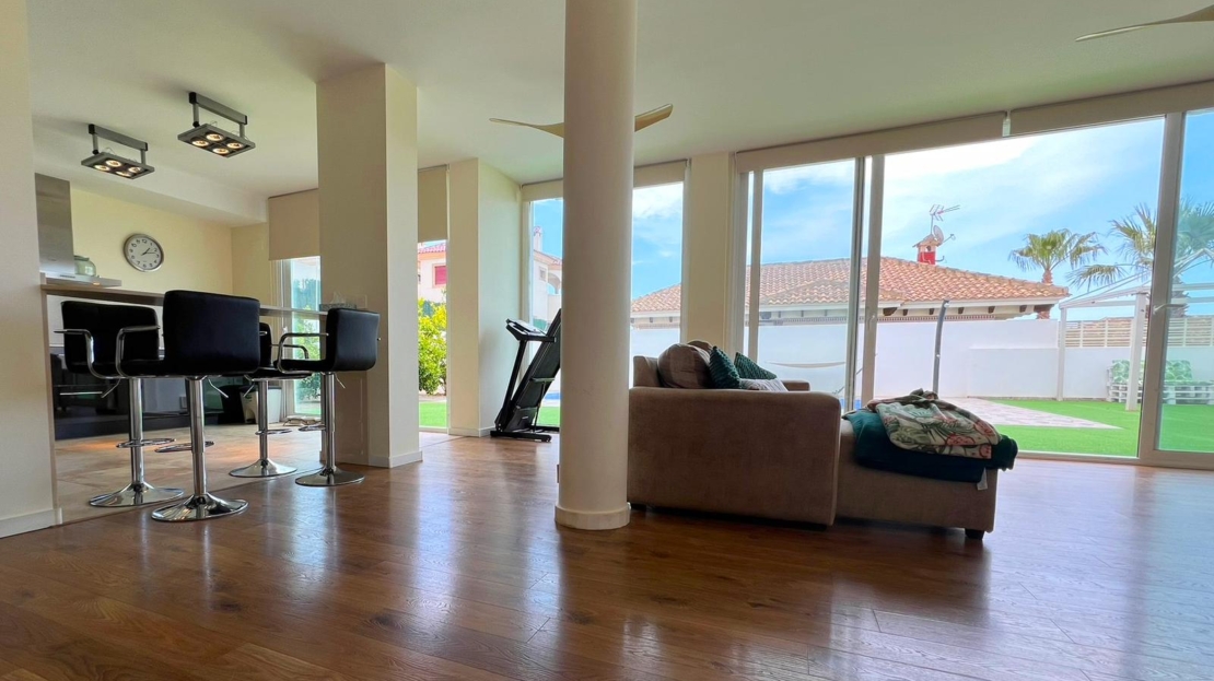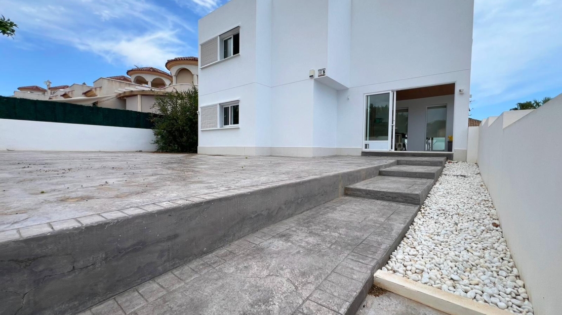 Moderna villa independiente en La Marina, San Fulgencio, con un diseño moderno. Cuenta con 322 m² construidos en una parcela de 585 m², esta propiedad se distribuye en dos plantas más sótano y ofrece todo lo necesario para disfrutar de un estilo de vida exclusivo.