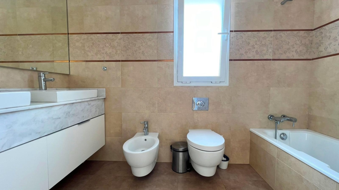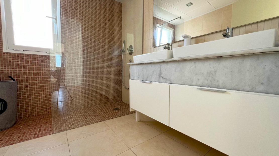 La planta alta dispone de 3 dormitorios, 2 baños y una espaciosa terraza de 24 m², perfecta para relajarse o disfrutar del sol.