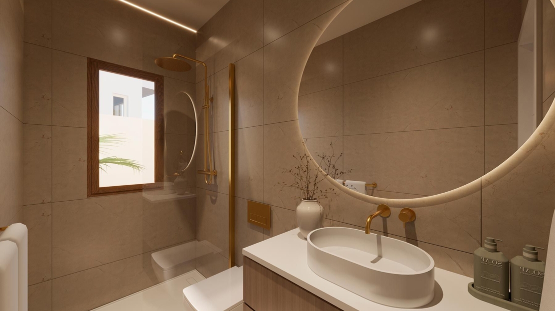 Ubicada sobre una amplia parcela de 592 m², esta villa de lujo independiente dispone de 3 dormitorios y 4 baños, y se distribuye en dos plantas con espacios amplios y luminosos. En la planta baja, un espectacular salón-comedor de concepto abierto fluye hacia la cocina de diseño y se abre a través de grandes ventanales al jardín privado y a la piscina con jacuzzi, creando una continuidad perfecta entre interior y exterior. Esta zona se convierte en un auténtico oasis de relajación, ideal para disfrutar del clima privilegiado de la Costa Blanca. La parte trasera de la vivienda cuenta con acceso independiente y zona de aparcamiento privado para 2 coches, garantizando comodidad y privacidad. En esta misma planta se ubica un dormitorio principal con vestidor y baño en suite, además de un baño adicional para invitados. La primera planta alberga dos dormitorios adicionales, ambos con baño en suite, vestidor y acceso directo a una gran terraza con espectaculares vistas abiertas al entorno. En la planta superior se encuentra el solárium privado, equipado con ducha y cocina de verano, un espacio exclusivo para disfrutar de los atardeceres dorados sobre el mar y el golf.