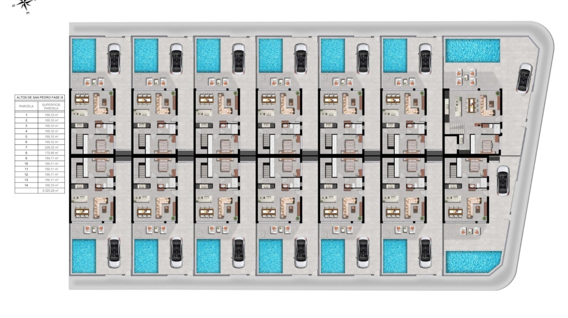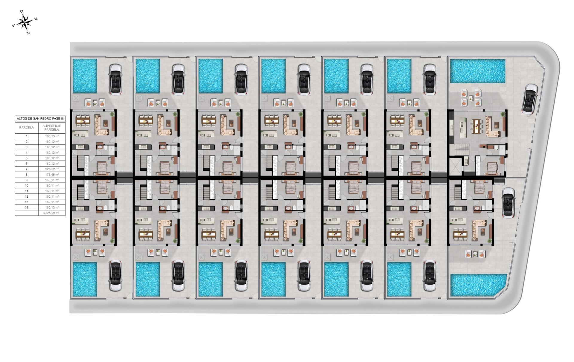 Descubra la tercera fase de este exclusivo proyecto residencial en San Pedro del Pinatar, donde la arquitectura moderna se une al confort y la funcionalidad. Estas 14 villas adosadas están diseñadas con un estilo minimalista y acabados de alta calidad, ofreciendo una experiencia de vida elegante y sofisticada en la Costa Cálida. Cada villa cuenta con 3-4 amplios dormitorios, 3 baños, piscina privada, terrazas y jardín privado, creando el entorno perfecto para la privacidad, la relajación y la vida al aire libre mediterránea.