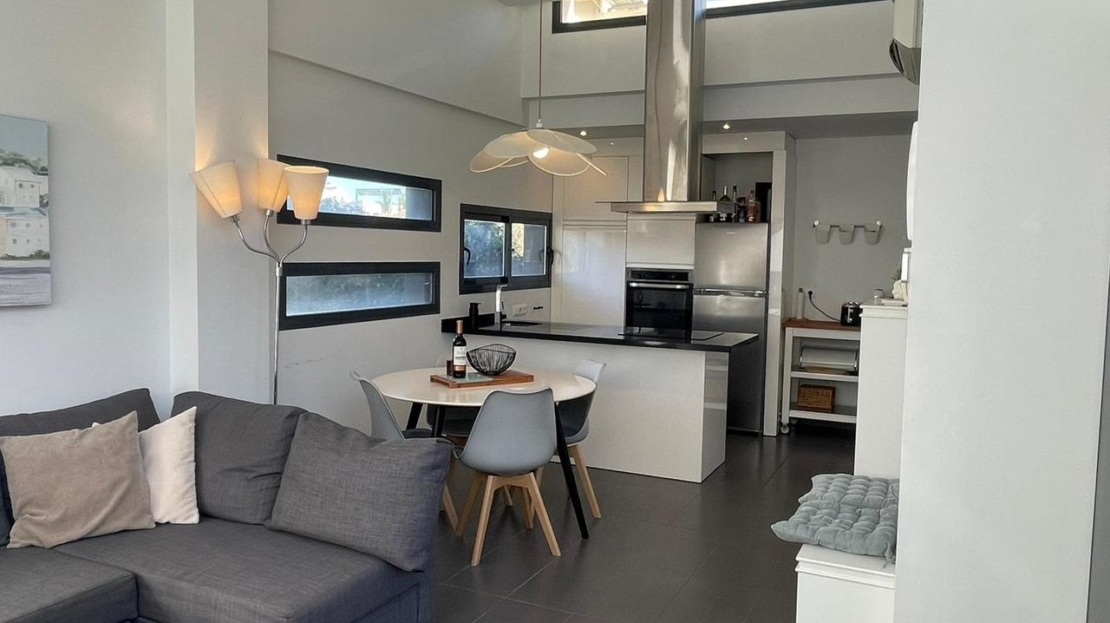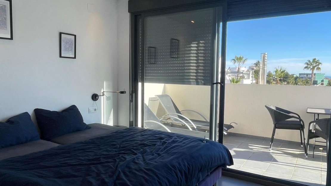 Modern semi-detached villa with 3 bedrooms in Villamartin, Alicante where luxury, comfort, and style come together in every detail. Within walking distance to La Fuente and close to the golf courses of Campoamor, Las Ramblas, Las Colinas and Villamartin.The property consists of a large private garden with terrace, a spacious living/dining room with a modern fully equipped kitchen, storage/utility room for bikes, three bedrooms with fitted wardrobes, two bathrooms, air conditioning (hot/cold) throughout the property, a rooftop terrace/solarium with sea views, and off road parking.There is a lovely communal garden with swimming pool to enjoy the Spanish weather all year long!The location of this property is as exceptional as the home itself. Just minutes away, you will find 4 renowned golf courses – perfect for both seasoned players and casual enthusiasts. La Zenia Boulevard, one of the largest shopping centers in the region, offers endless retail and leisure opportunities. Within walking distance, La Fuente commercial centre awaits with its vibrant mix of restaurants, bars, and cafés, the ideal spot for relaxed dining and lively evenings.