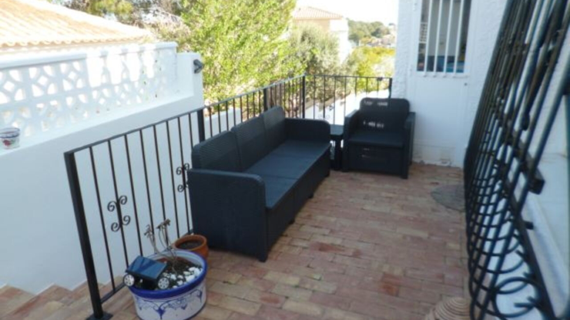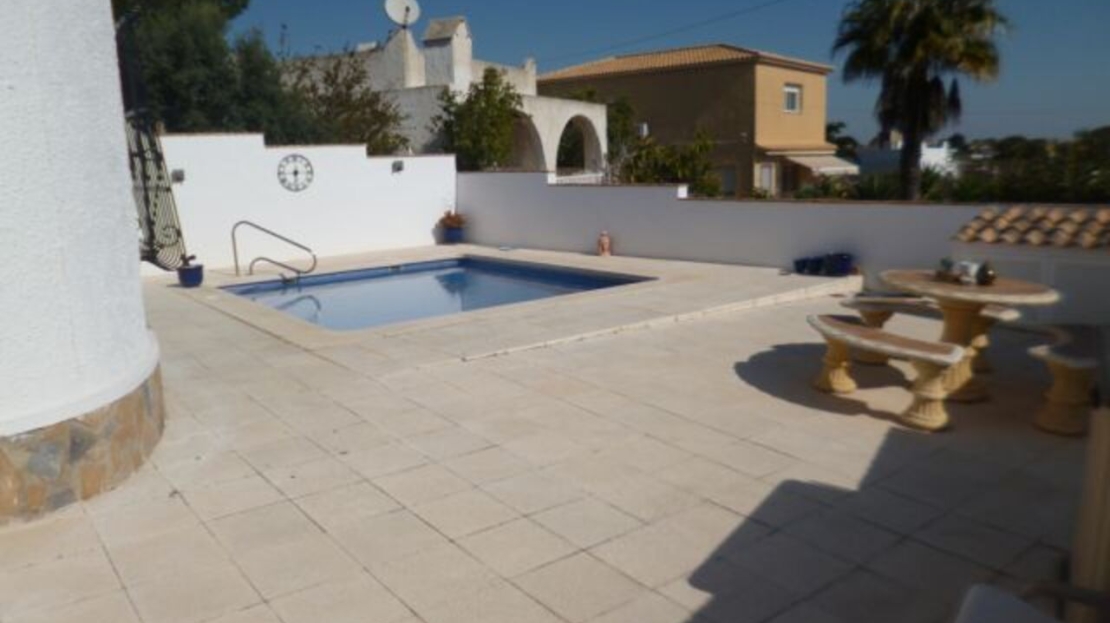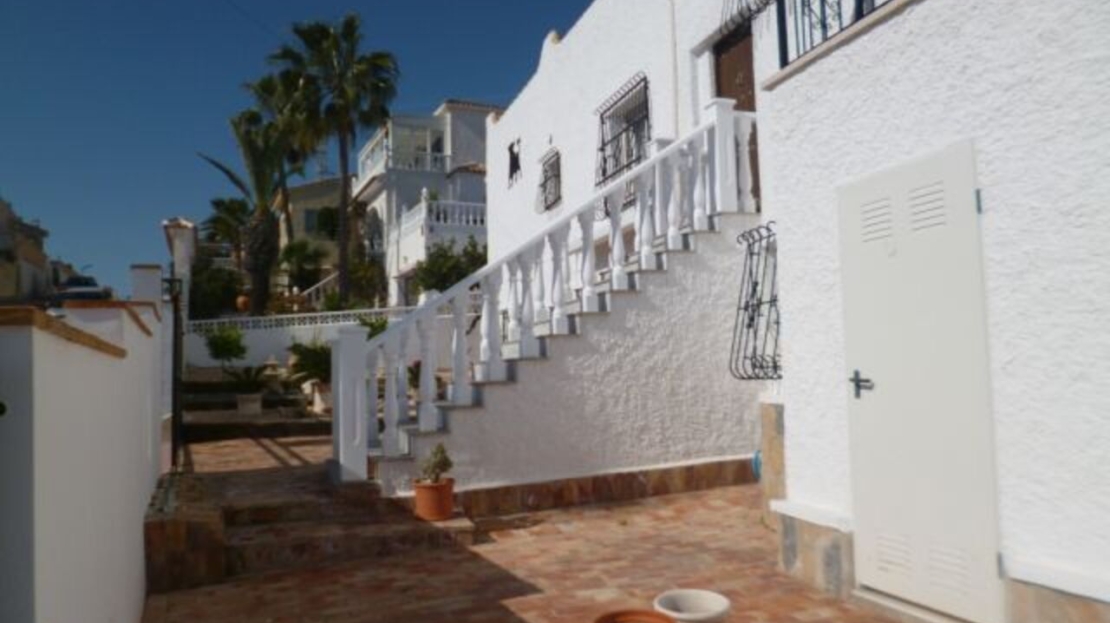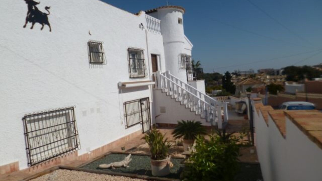 A Very spacious 5 bedroom Villa, beautifully decorated throughout and well maintained gardens with a private swimming pool. Situated in blue lagoon close to shops and bars and schools, south east facing with large solarium with fantastic sea views. The property consists of two separate apartments, the top floor has a fantastic large master bedroom with en-suite and walk in ward robe, living room with small bar open plan to a modern American kitchen and dining room. The bathroom has a shower and two more bedroom one with a exit to rear garden. Stairs to the solarium a massive terrace to a glazed store room for sun loungers etc. The Ground floor apartment also has a large lounge living room open plan to the modern open plan kitchen, a corridor from the living room to a storage / games room. Bedroom with en-suite and exit door to the front, another bathroom with shower and another bedroom with fitted wardrobe . The garden is low maintenance and has a private swimming pool and off street parking. A great investment, perfect for holidays or permanent living. Villamartin is a very popular holiday resort for especially for golfers. There are three excellent golf courses that are close to each other in the Villamartin area although Villa Martin Golf Course is by far the most established and best known of the three (the other two are Las Ramblas and Campoamor). Villa Martin is a fine championship course and is noted for hosting the 1994 Mediterranean Open. The golf course provides some stunning scenery and is of medium difficulty with excellent quality greens. The Campoamor and Las Ramblas golf courses are close by and are just a few minutes drive away.The renowned Villa Martin Plaza has a great selection of bars, shops and restaurants and is the ideal spot for that “special night out”. This beautiful central square has a bank, supermarket, shops, cafes and some excellent restaurants. The gardens are very picturesque, look closely and you will notice the naked lady golfer statue. Close to Villamartin are numerous uncrowded beaches with magnificent views over the sparkling blue Mediterranean and the “white sand” that are typical of the Costa Blanca. The beaches along the coastline close to Villamartin are Playa Flamenca, La Zenia, Cabo Roig, and Campoamor. All of these beaches and all the other major beaches along this part of the Mediterranean coastline are regularly awarded the European Blue Flag which is your guarantee of high standards and facilities for the whole family. Villa Martin is situated about 8 kilometres south of the bustling town of Torrevieja on the southern Costa Blanca and is just a short drive from the motorway (AP-7).