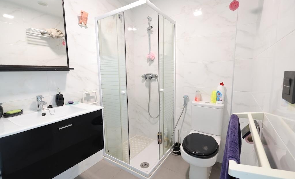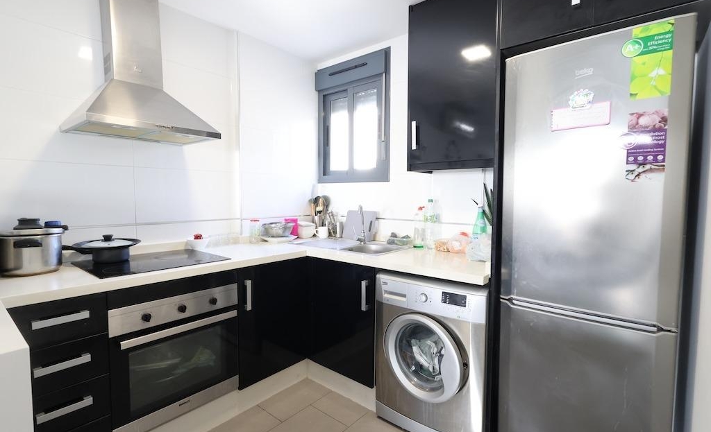 Ground-floor bungalow with two gardens: one measuring 13 m2 with direct access to the communal swimming pool area, and another of 6 m2 at the back of the property.The home offers 77 m2 distributed into 2 bedrooms, 2 bathrooms, an open-plan kitchen connected to the living-dining area, and a glazed terrace.It is sold fully furnished and equipped with air conditioning. An outdoor parking space is included.The residential complex features large green areas, a children’s play area, and is located next to the Zenia Boulevard shopping centre.
