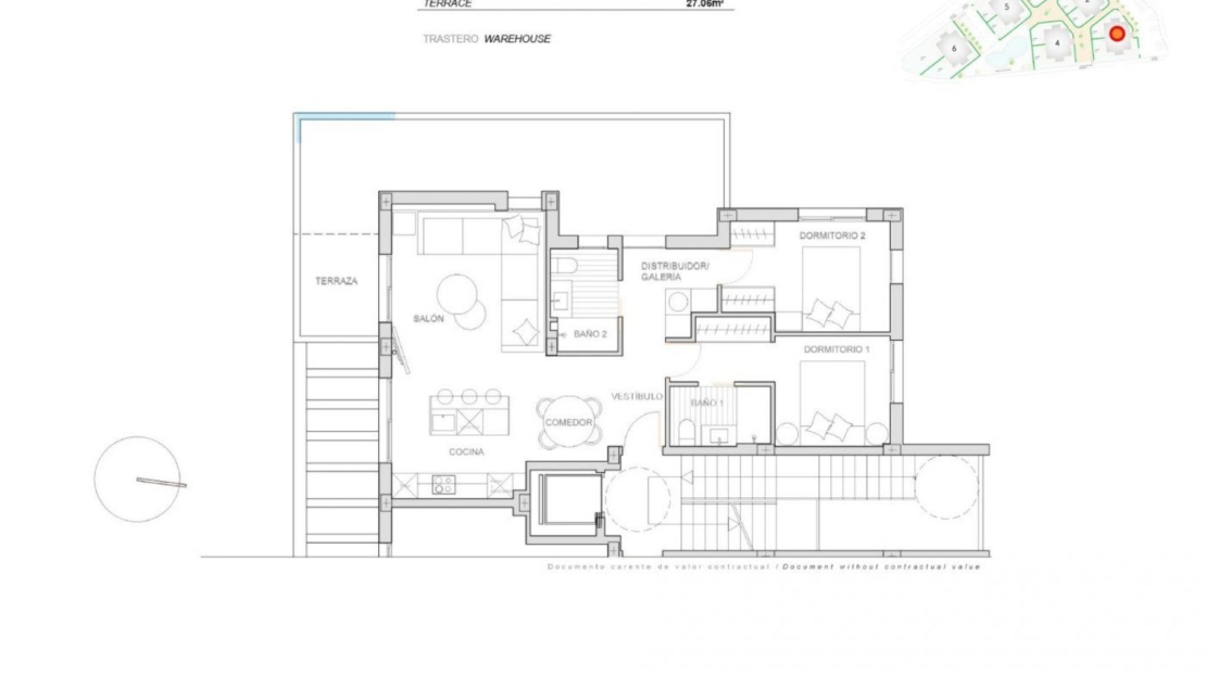 Komplexet har en gemensam pool och alla lägenheter har en parkeringstakt och ett förråd.