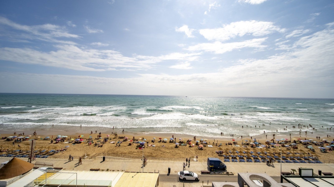 Lägenhet på femte våningen med fantastisk frontutsikt över havet. Totalrenoverad med högkvalitativa material, öppen planlösning med kök (värde €20 000), vardagsrum med A/C, 2 sovrum och 1 badrum. Bostadsområde med pool, sportbanor, gemensamt solarium med havsutsikt och 24h concierge.