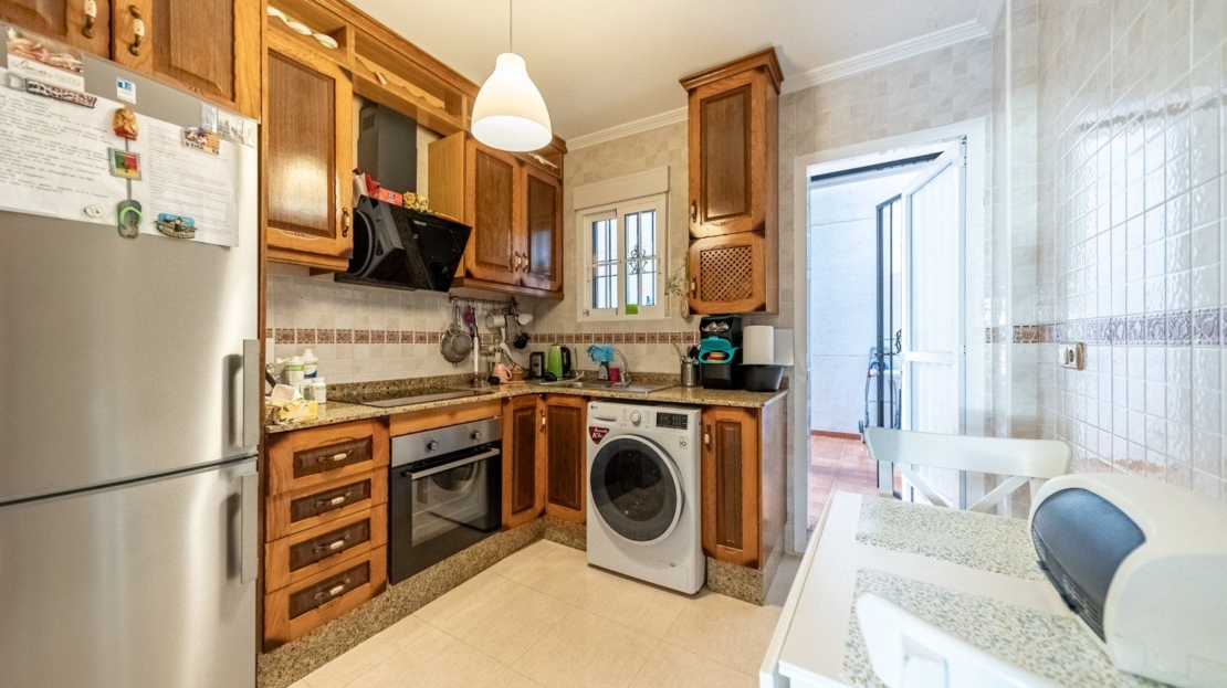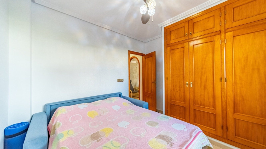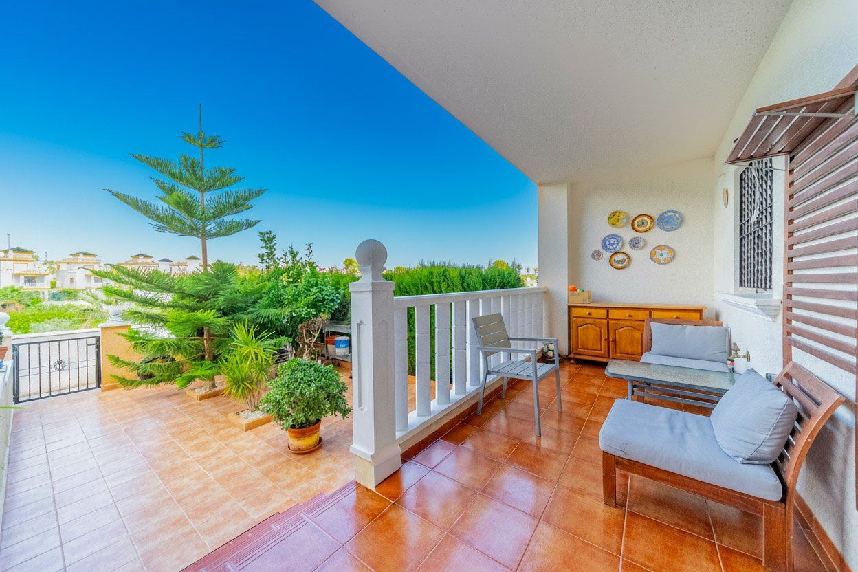 Till salu: 2-sovrumsbungalow med 36 m² stenbelagd tomt med subtropisk trädgård och kanariefåglar, belägen i en bostadsförening med pool och parkering. Bungalown ligger i området Lomas Cabo Roig, på Castillo del Río-gatan i Orihuela Costa, provinsen Alicante, Spanien. Ett lugnt och pittoreskt läge med utsikt över parken och havet. I närheten finns den engelska matbutiken Iceland, kaféer och små butiker. Bungalown har 75 m² byggd yta, en trädgårdstomt på 36 m², en inre patio/tvättstuga på 19 m² och en entréterrass på 15 m². Byggd 2005. Planlösning: vardagsrum med separat kök och patio, 2 sovrum och ett fullt badrum. Till salu i utmärkt skick, inget renoveringsbehov, med möbler och vitvaror