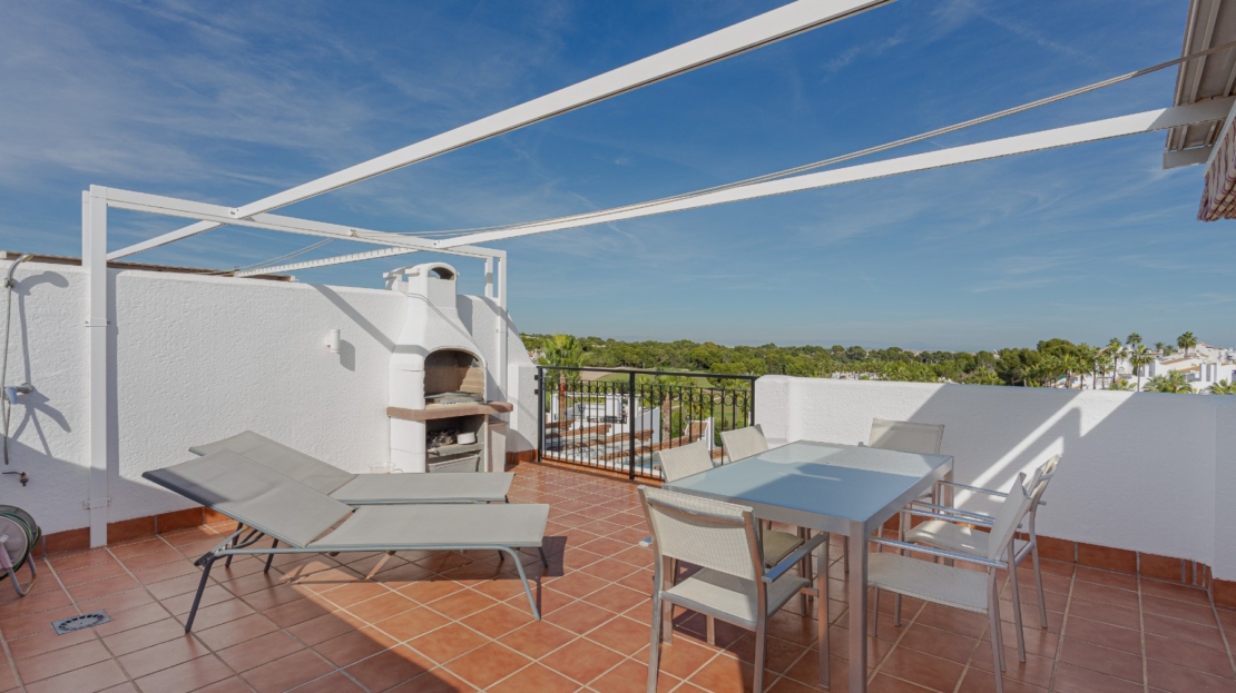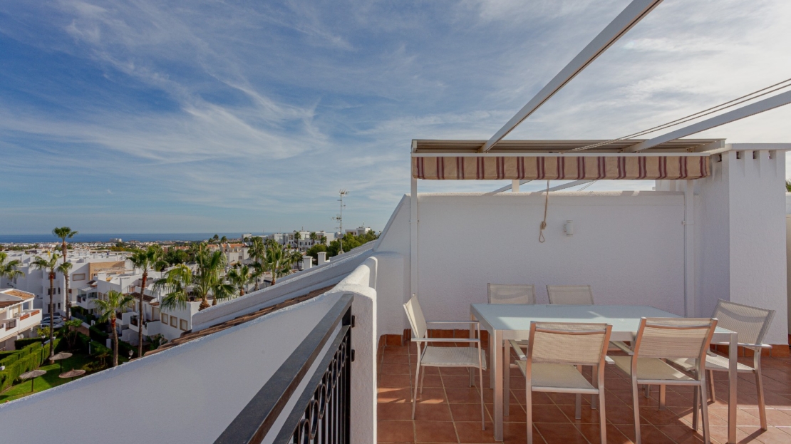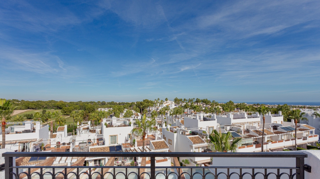 Ático en venta en Orihuela Costa, situado en el prestigioso barrio de Villamartín, en el corazón de la Costa Blanca Sur.Ubicado dentro de una urbanización privada con piscina comunitaria y zonas ajardinadas, esta propiedad ofrece un entornotranquilo y cuidado, ideal para disfrutar del estilo de vida mediterráneo.La vivienda dispone de 2 dormitorios y 2 baños, un luminoso salón con acceso directo a un balcón de 15 m², y un espectacular solárium privado de 50 m². Desde la terraza en la azotea se disfrutan vistas abiertas a la piscina de la residencia, al campo de golf de Villamartín y un ligero vistazo al mar en el horizonte.Su ubicación es especialmente atractiva: a solo 5 minutos del golf de Villamartín, a unos 8 minutos de las playas de Orihuela Costa como La Zenia, Playa Flamenca o Cabo Roig, y a menos de 3 minutos en coche de supermercados, restaurantes, farmacias y todos los servicios esenciales.El centro comercial La Zenia Boulevard se encuentra a 10 minutos, el aeropuerto de Alicante a unos 45 minutos y el de Murcia-Corvera a aproximadamente 40 minutos. Una zona estratégica tanto para vivienda habitual, segunda residencia como para inversión inmobiliaria.Este ático en Villamartín combina elegancia, amplios espacios exteriores y una ubicación privilegiada, dentro de una de las zonas más demandadas de Orihuela Costa y de toda la Costa Blanca.