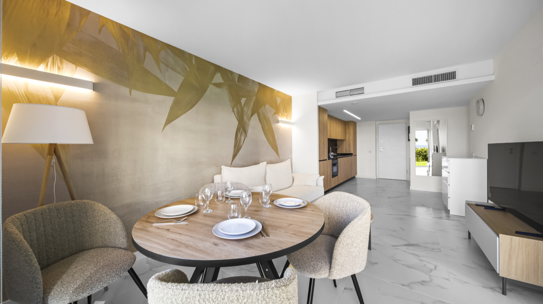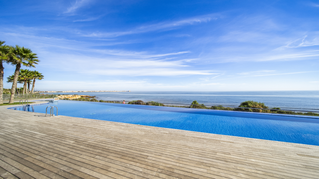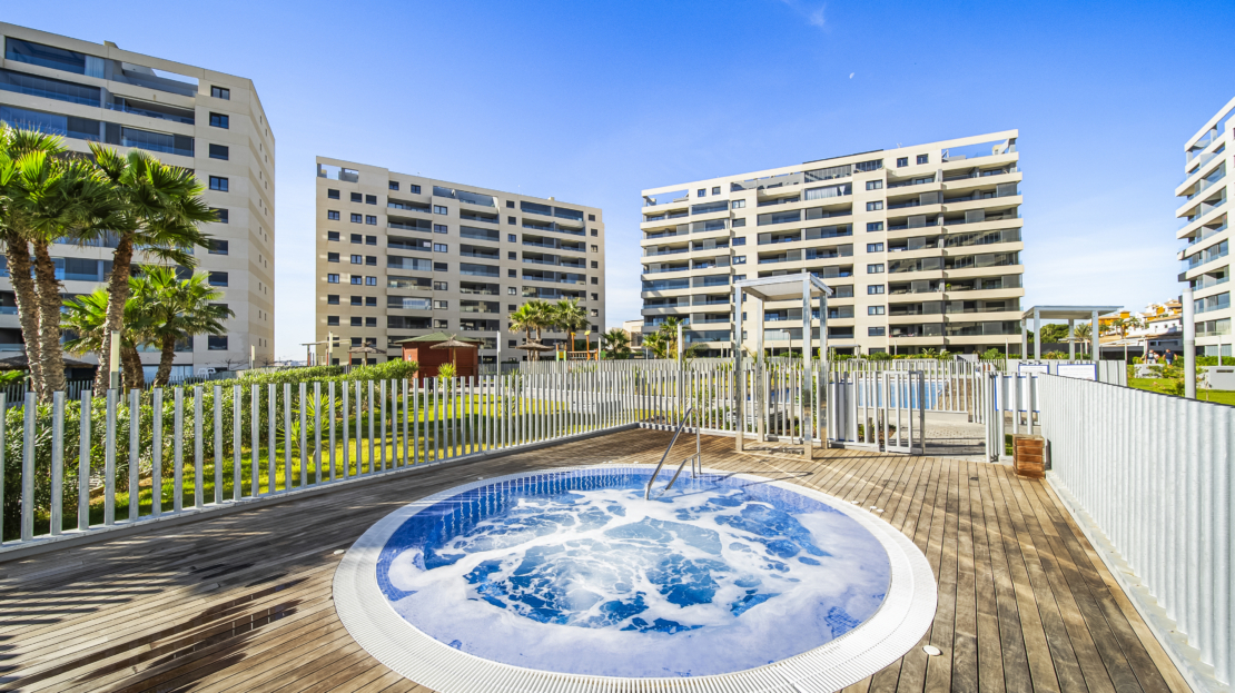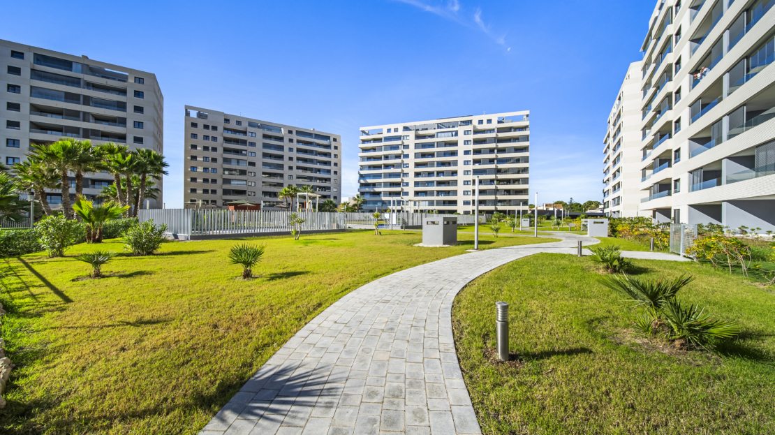 Helt ny lägenhet i det exklusiva bostadskomplexet Posidonia, beläget vid strandlinjen i Punta Prima. Den har 2 sovrum, 2 badrum och en trädgårdsterrass på 46 m² med östläge. Bostaden har 127 m² byggyta, underjordisk parkeringsplats och förråd.