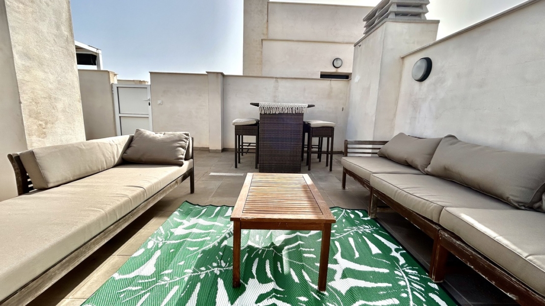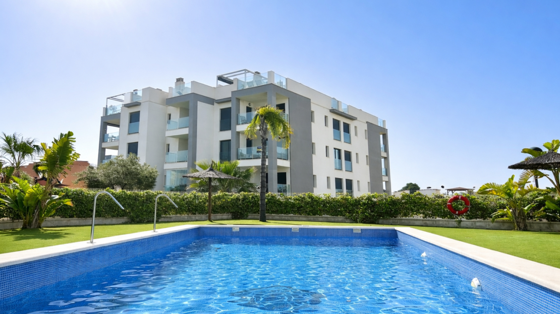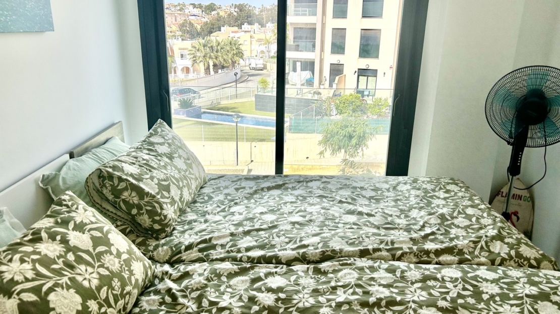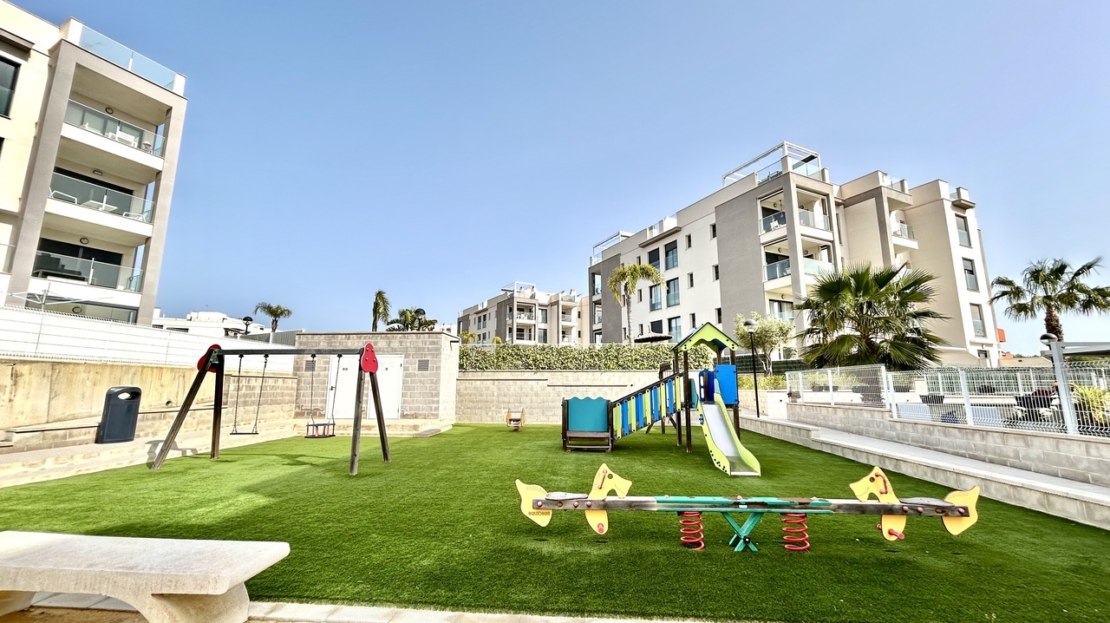Discover stylish Mediterranean living in this beautifully presented 2-bedroom, 2-bathroom apartment located in the sought-after Valentino Golf complex in Villamartín.This modern home offers a bright and airy open-plan layout, designed to maximize natural light and create a seamless flow throughout the living spaces. The spacious lounge opens onto a private balcony, where you can unwind while enjoying picturesque views over the lush communal gardens and sparkling pools—perfect for soaking up the relaxed Costa Blanca lifestyle.The standout feature is the private solarium, offering an additional sun-drenched space ideal for entertaining, sunbathing, or simply enjoying panoramic views in complete privacy—your own rooftop retreat under the Spanish sun.The master bedroom is a true sanctuary, featuring a private en-suite bathroom and direct access to the balcony, allowing you to wake up to tranquil views each morning. A second well-proportioned bedroom and a contemporary family bathroom complete the interior.Residents of this popular gated community benefit from exceptional on-site amenities, including multiple swimming pools, a tennis court, and a children’s playground—ideal for both families and holidaymakers alike. The property also includes a generous private parking space in the underground garage, offering both convenience and security.Whether you’re looking for a permanent residence, a holiday home, or a smart investment, this apartment combines comfort, location, and lifestyle in one of Villamartín’s most desirable developments