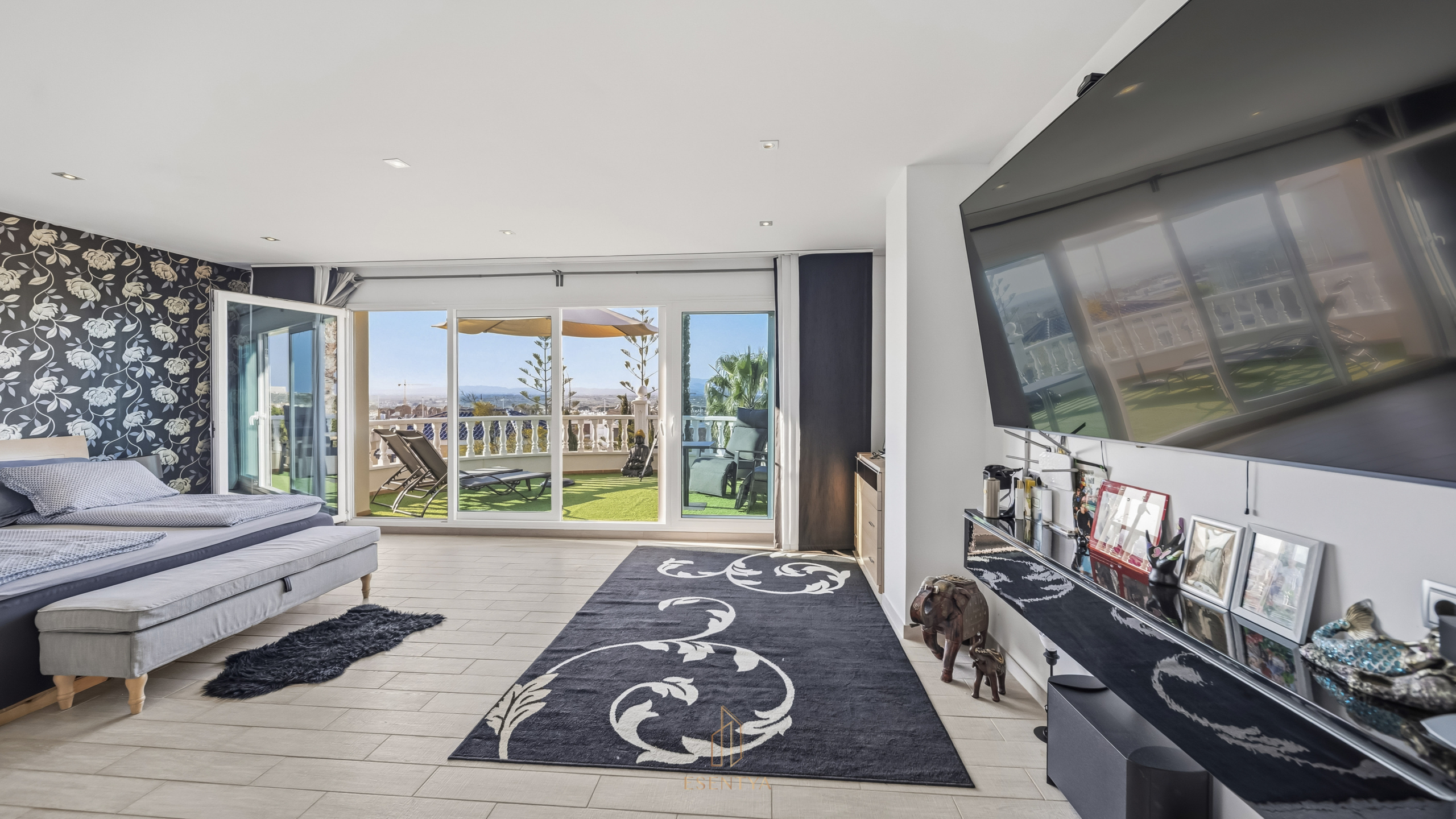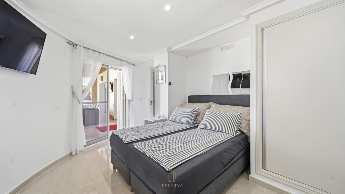 Stort sovrum med direkt utgång till en terrass mot framsidan