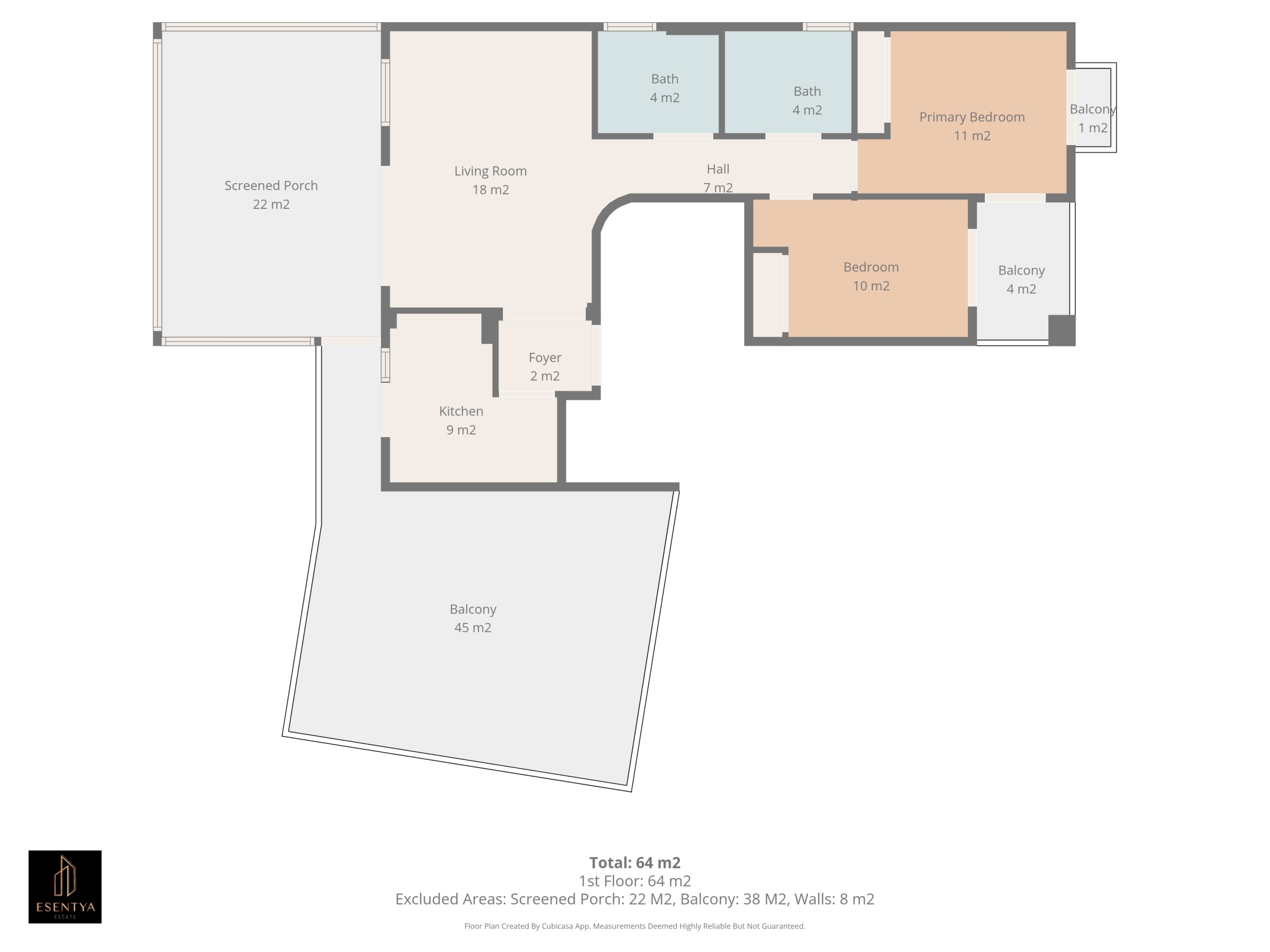 Bostaden består av ett vardagsrum med tillgång till en inglasad terrass som idag används som ett extra sällskapsutrymme, ett fullt utrustat kök med vitvaror och utgång till terrassen, två sovrum med inbyggda garderober och direkt access till en sydvänd terrass samt två badrum, varav ett med dusch och ett med badkar.